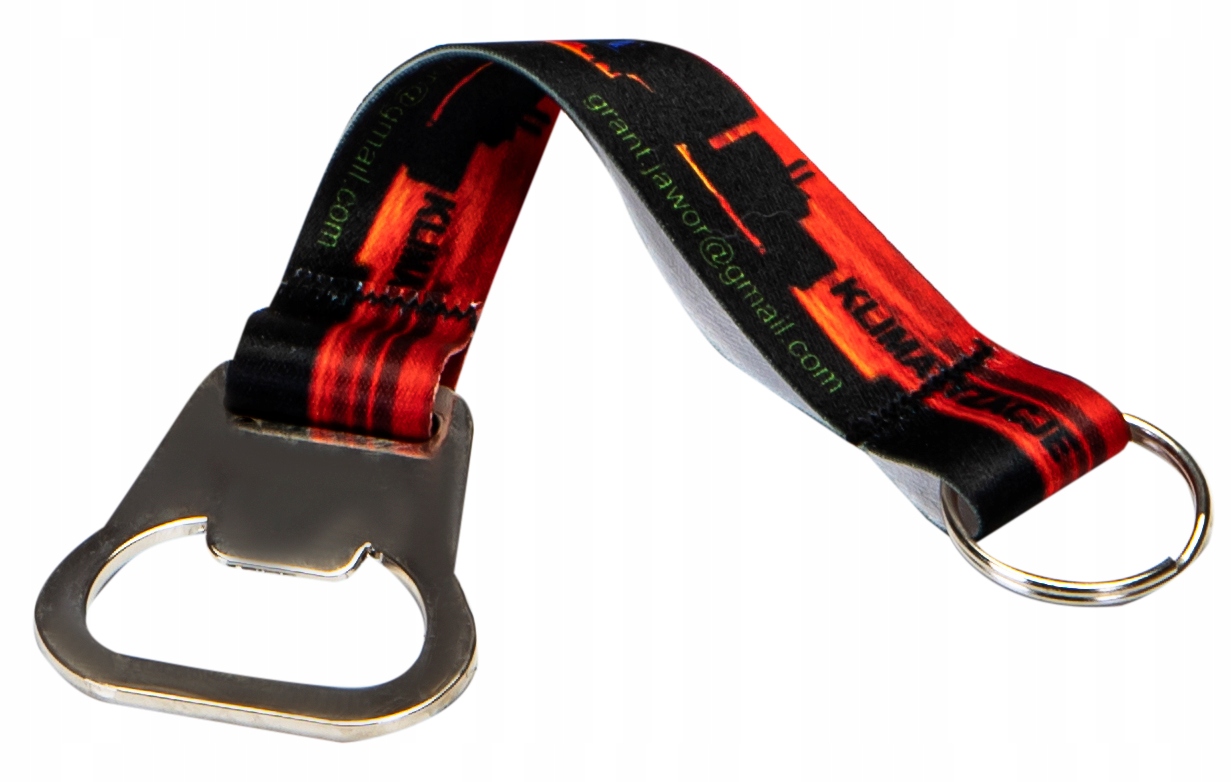 гаджет, який завжди буде використовуватися, і, таким чином, буде вітальним рекламним подарунком. Цей ключовий різьблений кільце закінчився відкривачем, крім очевидного використання, він ідеальний як ключовий кулон завдяки класичному гачку. Широка поліефірна стрічка забезпечує велику рекламну поверхню. Щоб підняти престиж цього гаджета, можна зробити лазерне позначення на самій металевій відкриття.