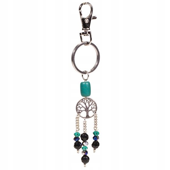 Ключове кільце з символом життєвого дерева та бірюзової намистини.