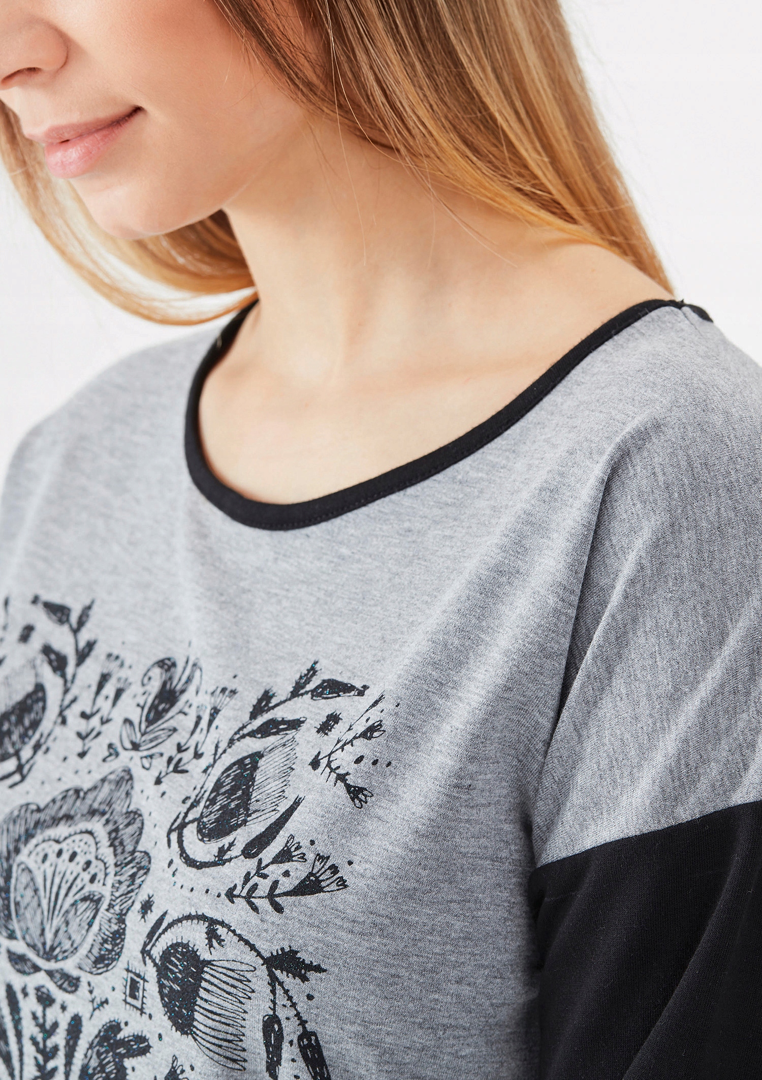 , який буде чудовим як комфортне вбрання навколо будинку. Модний та комфортний домашній одяг для домашнього одягу - це остання тенденція останніх сезонів. Рекреаційний набір, виготовлений з м'якої та теплої тканини для віскози. Унікальний ювелірний принт, натхненний роботою пофарбованого села Залоу поблизу Тарноу. > розмір: l <