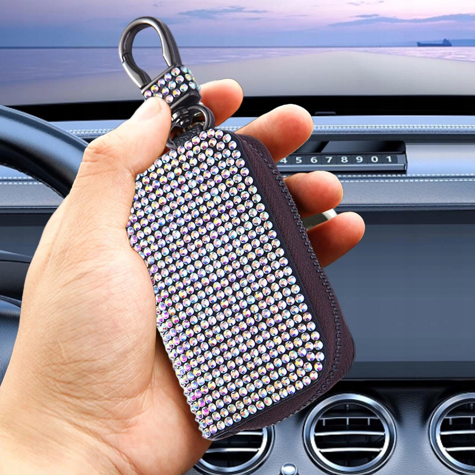 Ключовий корпус для шкіряного автомобіля PU з металевим гачком, кристалами, пультом дистанційного керування, барвистим