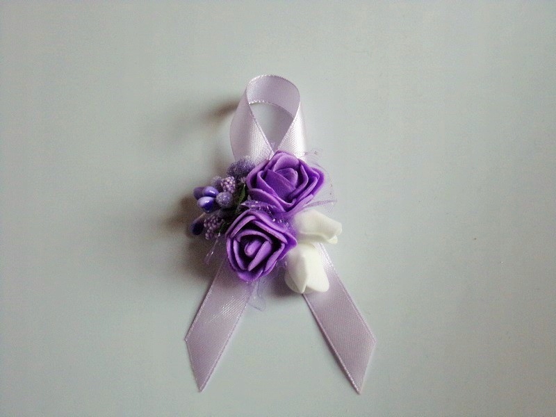 Штифт виготовлений з пінопластових троянд, зелених листків, флористичних аксесуарів та атласної стрічки з шириною близько 12 мм. 10 см.