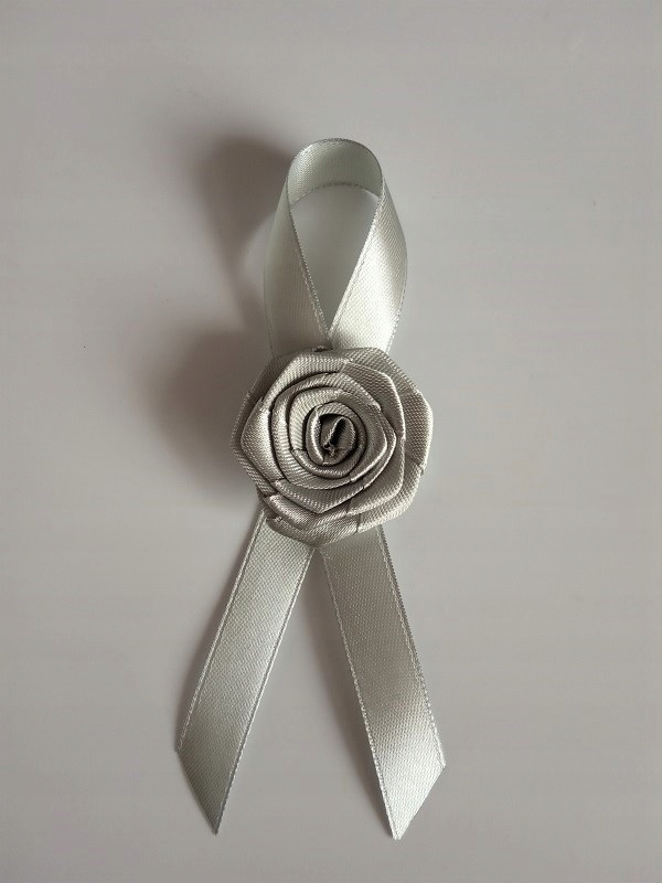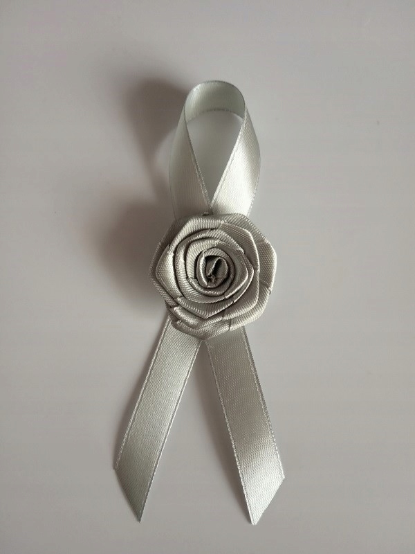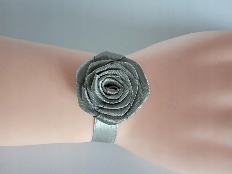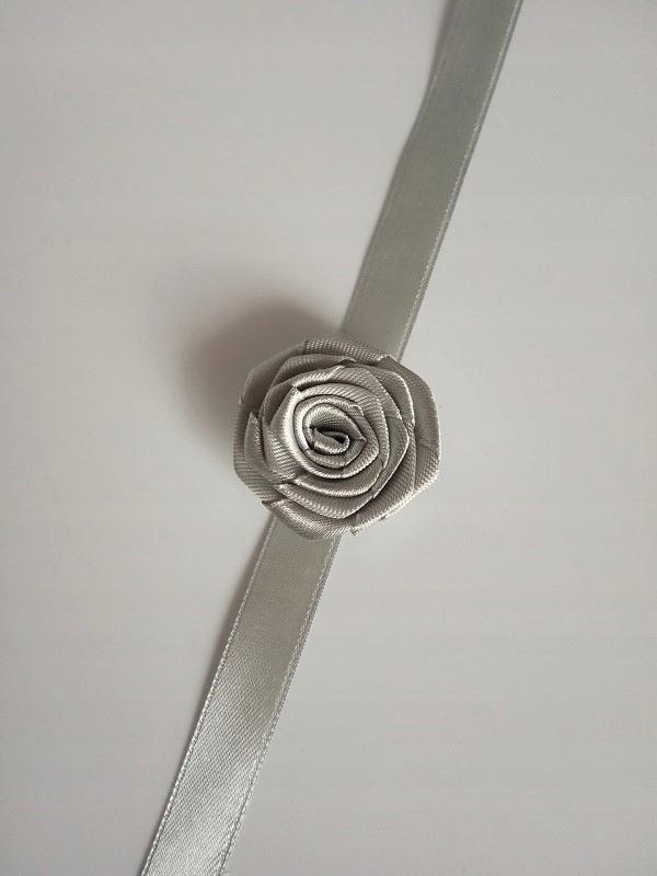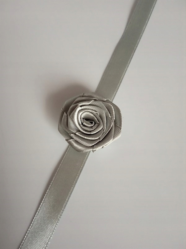Шпилька виготовлена з атласної стрічки шириною приблизно 1,2 см і троянди.
