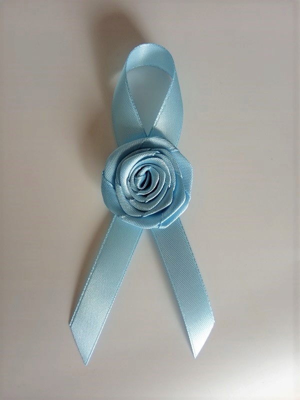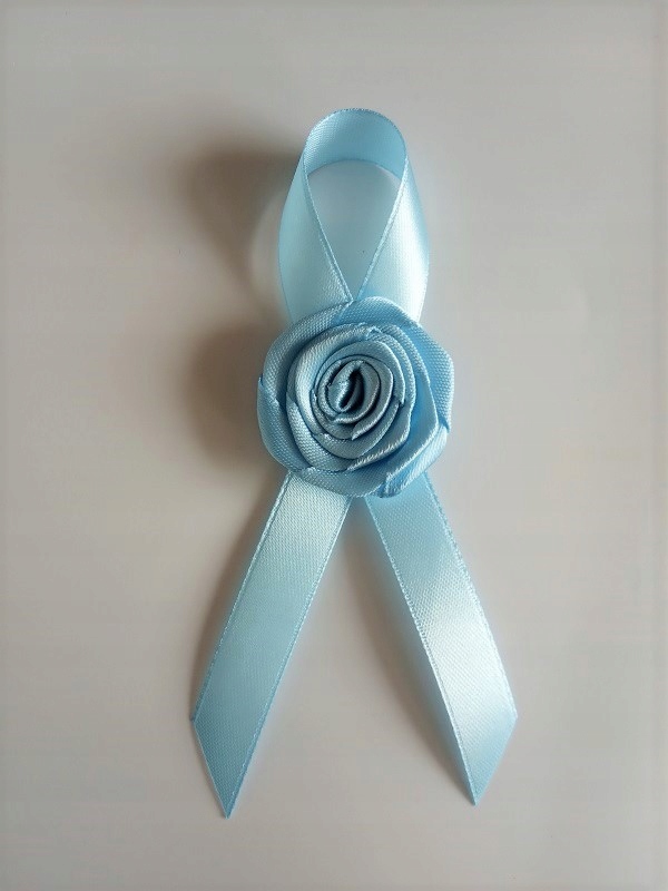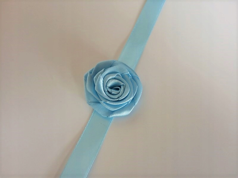 Прикраса виконана з атласної троянди та стрічки.