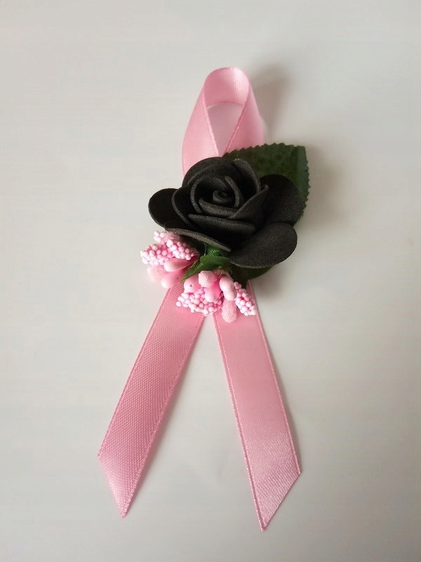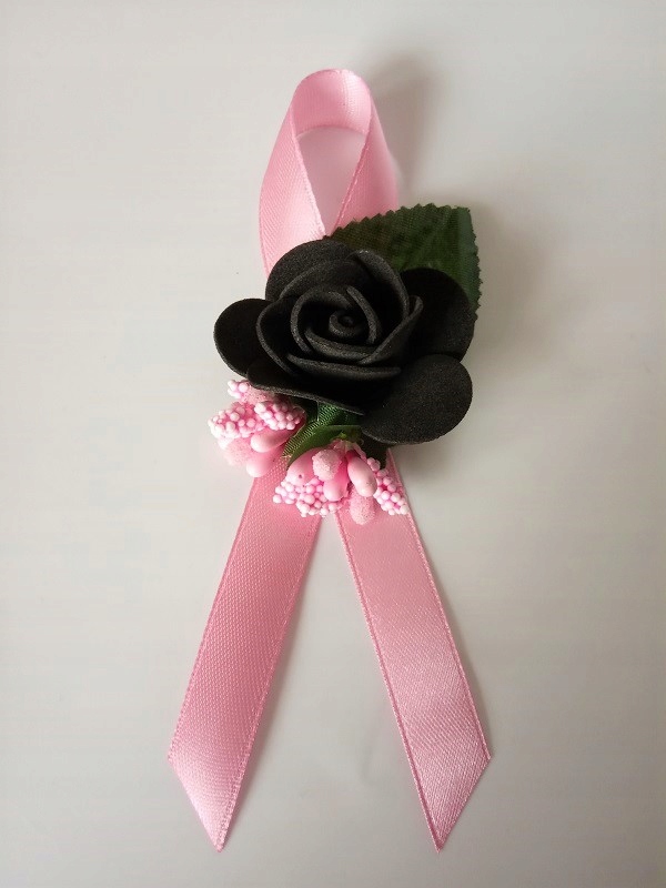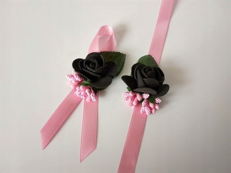 * рожева атласна стрічка, приблизно 12 мм завдовжки,