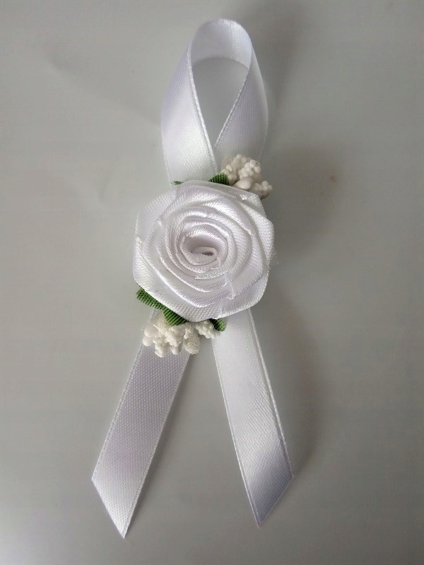 * атласна стрічка, приблизно 12 мм завширшки та приблизно 40 см завдовжки,
