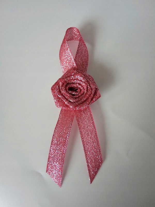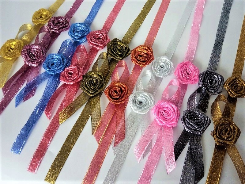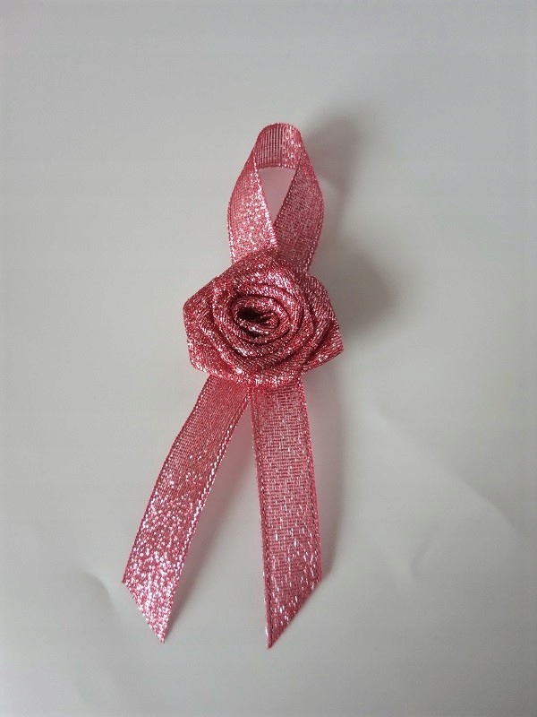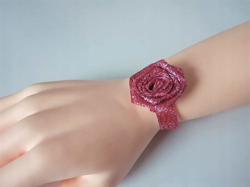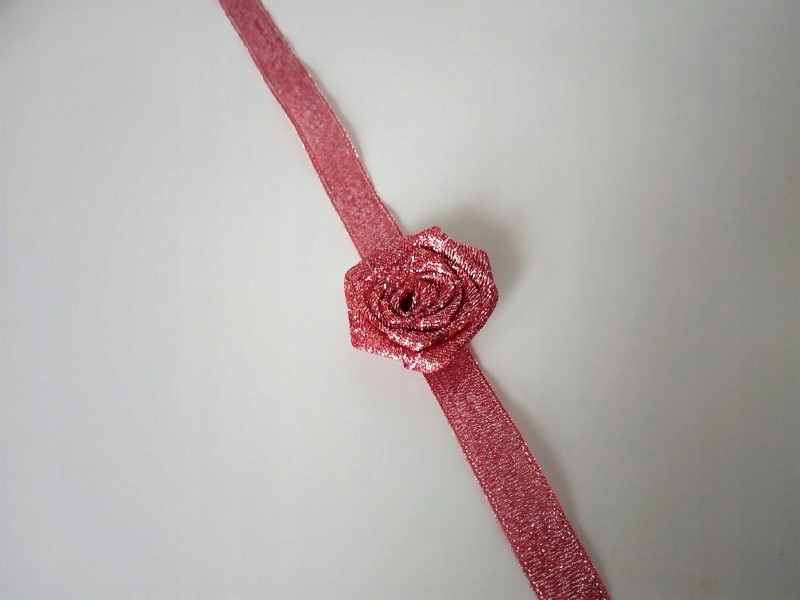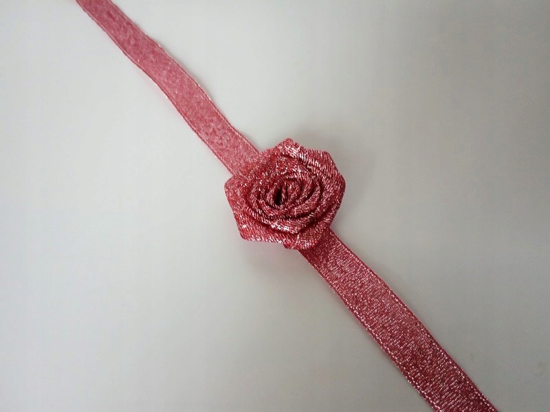 Шпилька виготовлена з парчової атласної стрічки, шириною приблизно 1,2 см, і троянди.