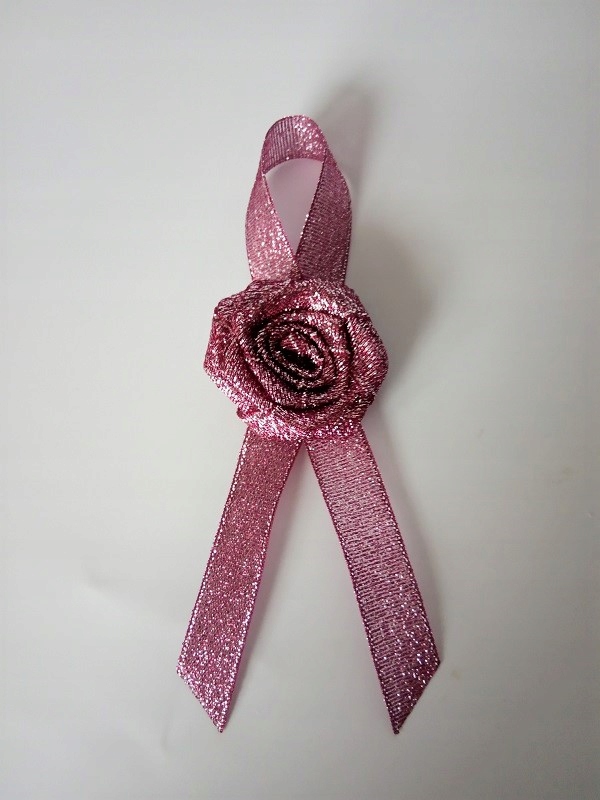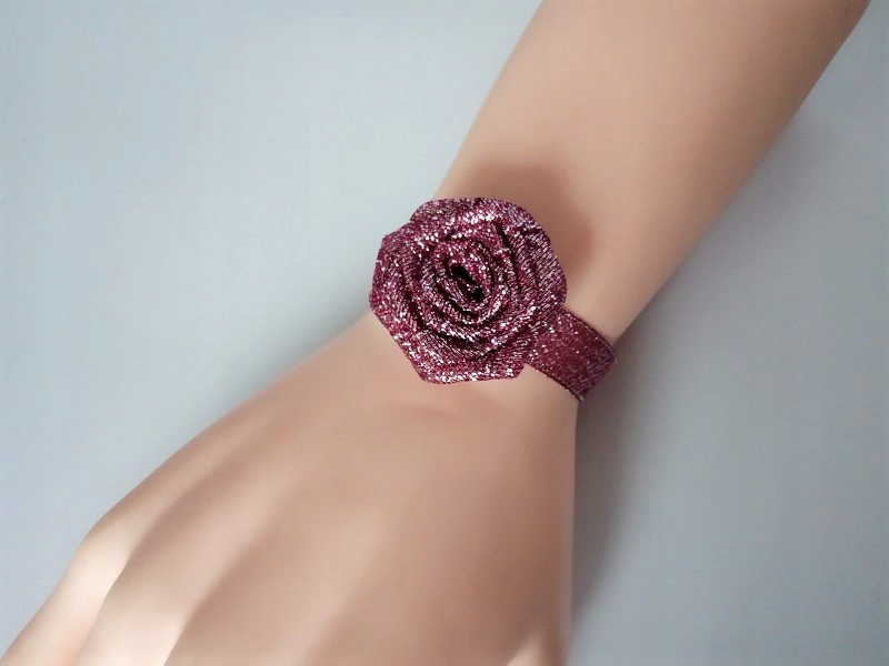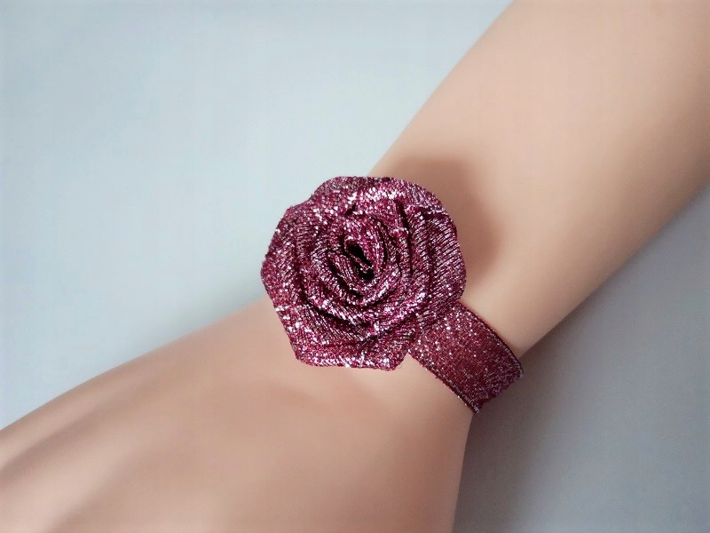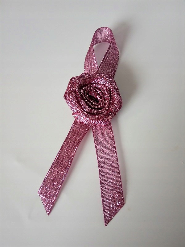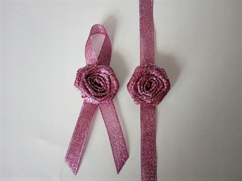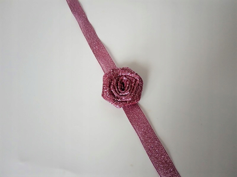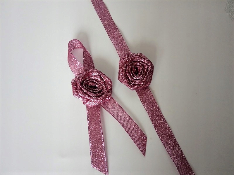 Прикраса виконана з парчової атласної троянди та стрічки