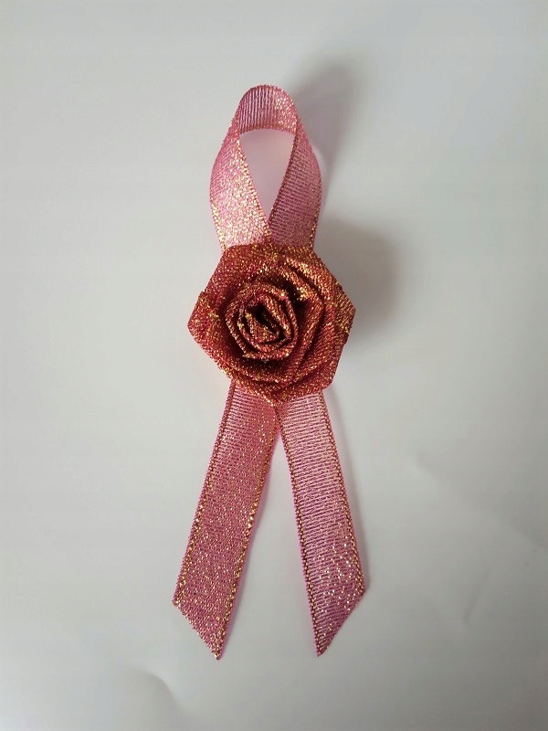 Прикраса виконана з парчової атласної троянди та стрічки