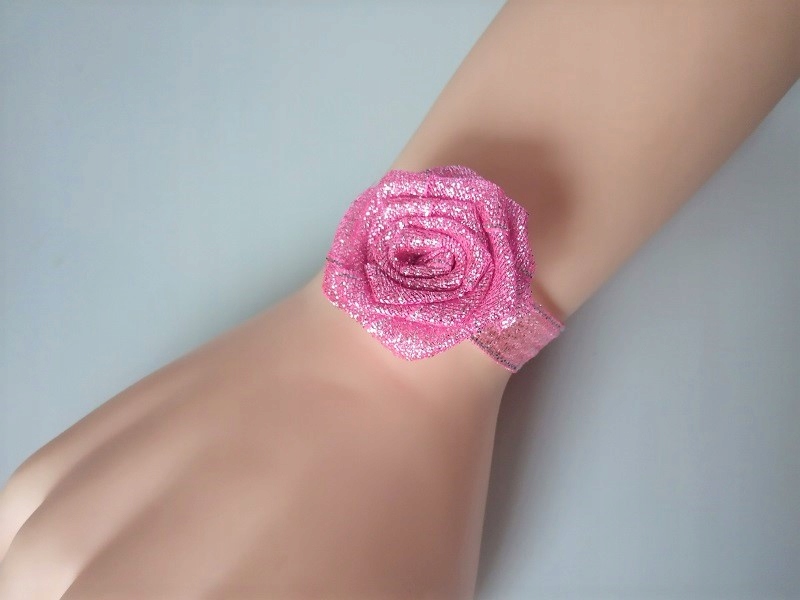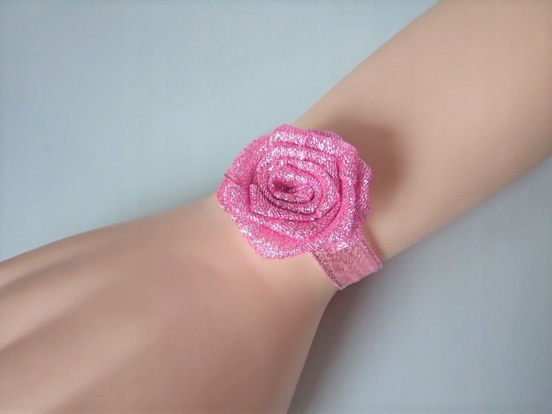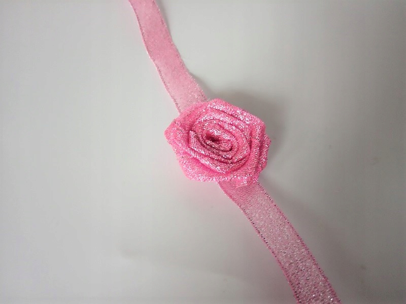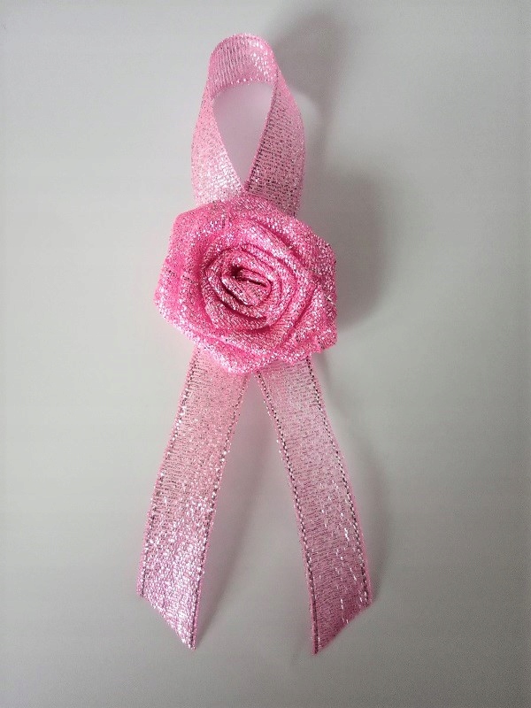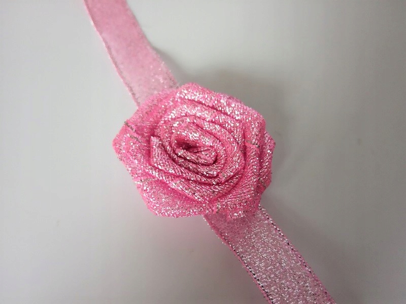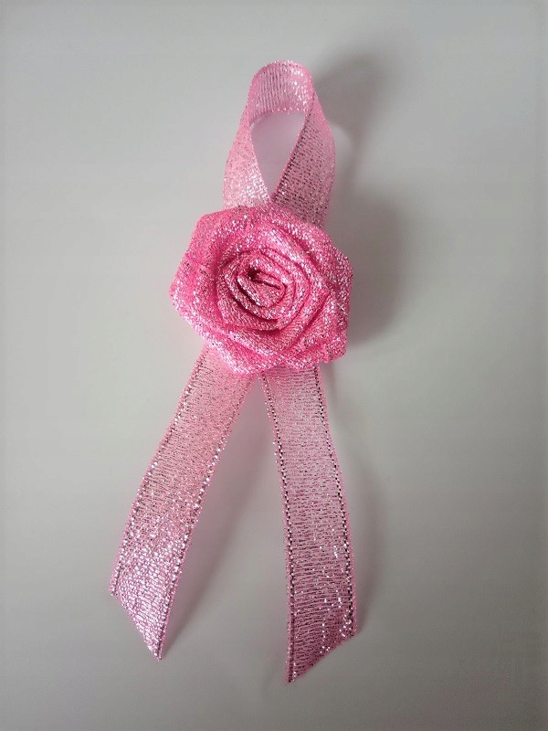 Прикраса виконана з парчової атласної троянди та стрічки