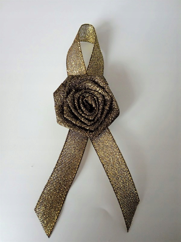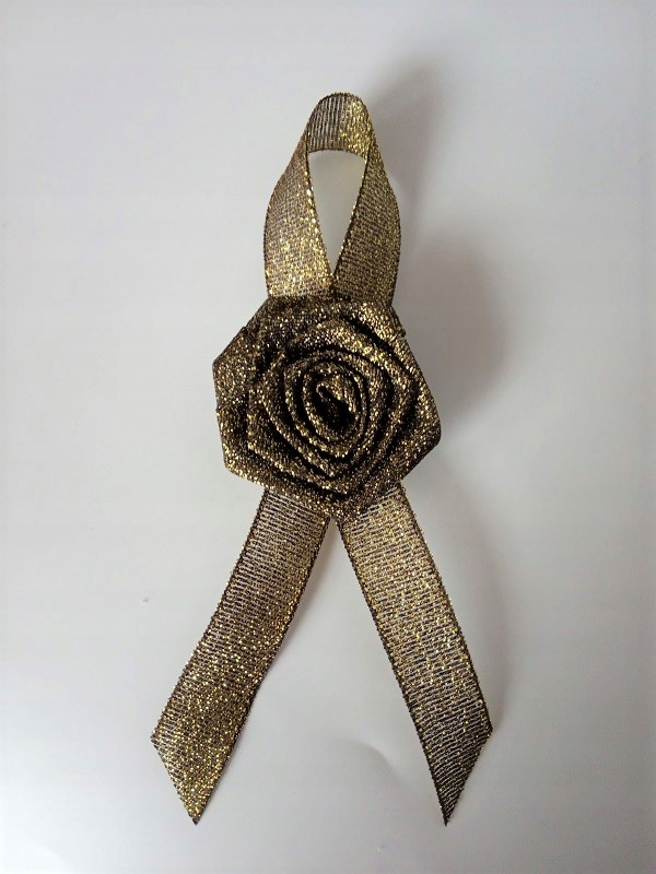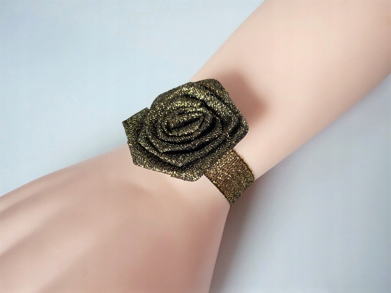 Шпилька виготовлена з парчової атласної стрічки, шириною приблизно 1,2 см, і троянди.