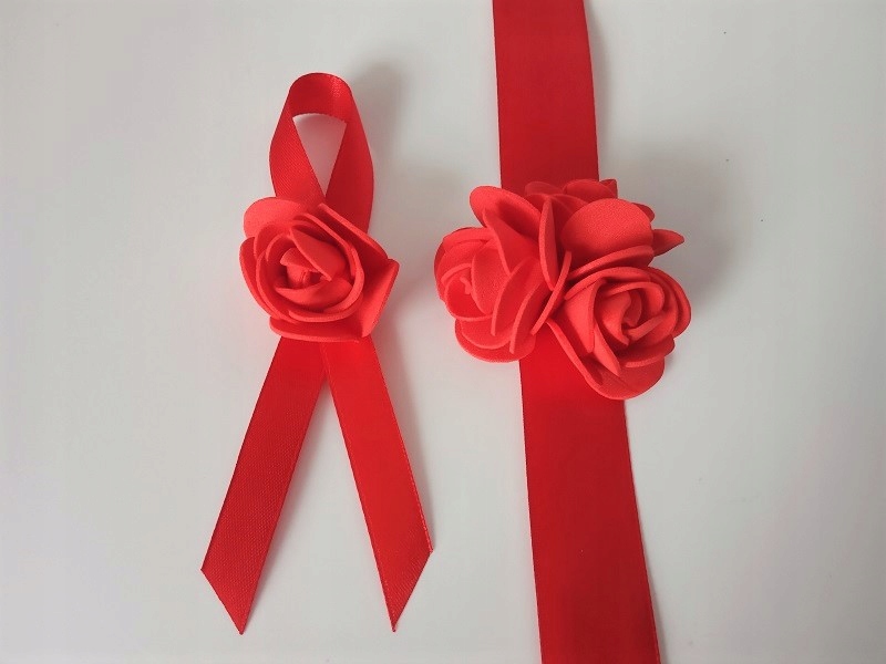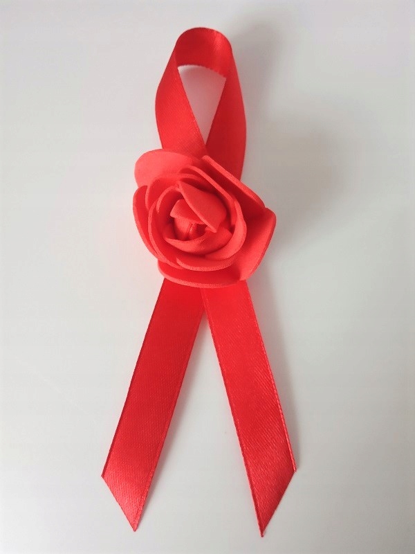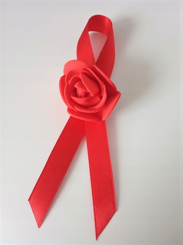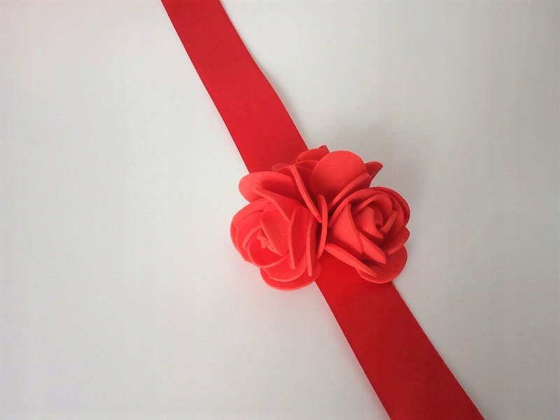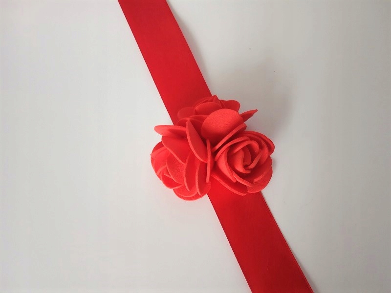 * червона атласна стрічка, приблизно 25 мм завдовжки,