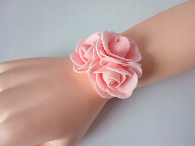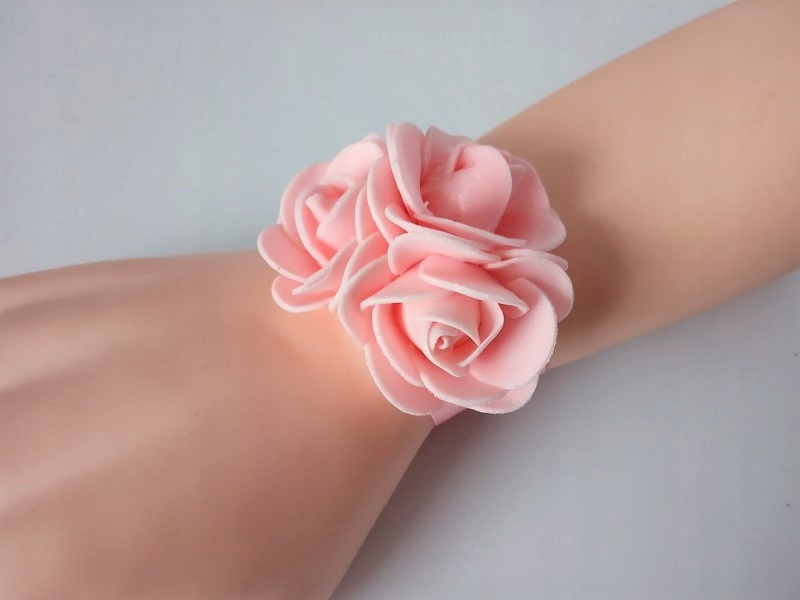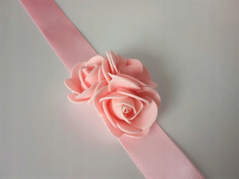 * три рожеві пінопластові троянди, приблизно 3 см у діаметрі.