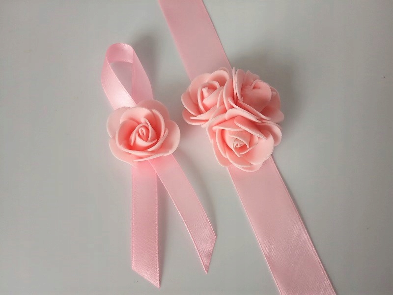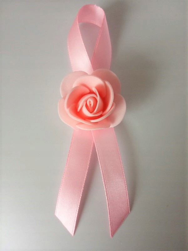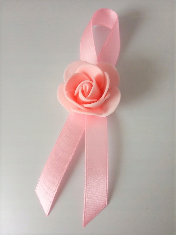 * рожева атласна стрічка, приблизно 25 мм завширшки та приблизно 40 см завдовжки,