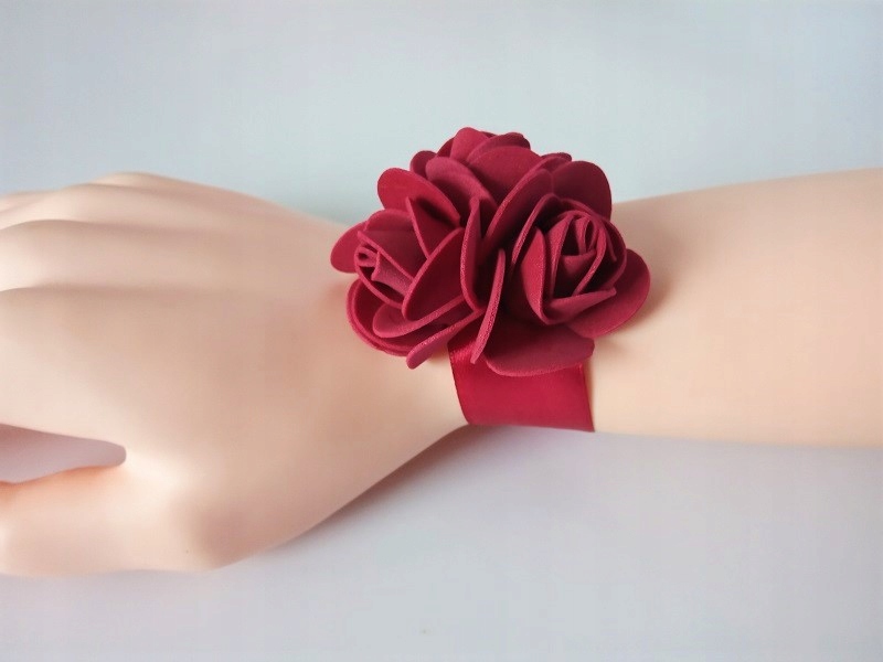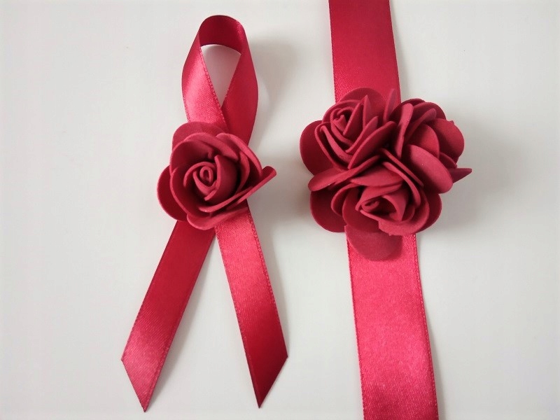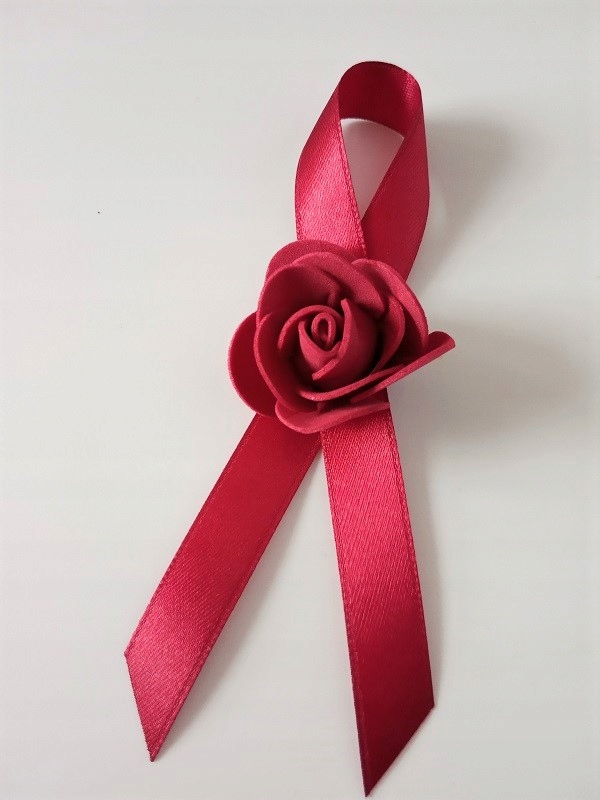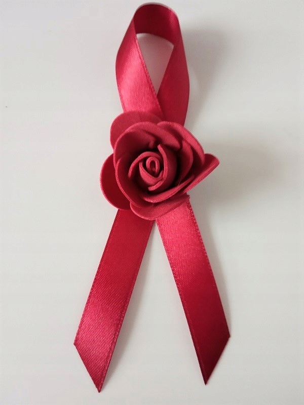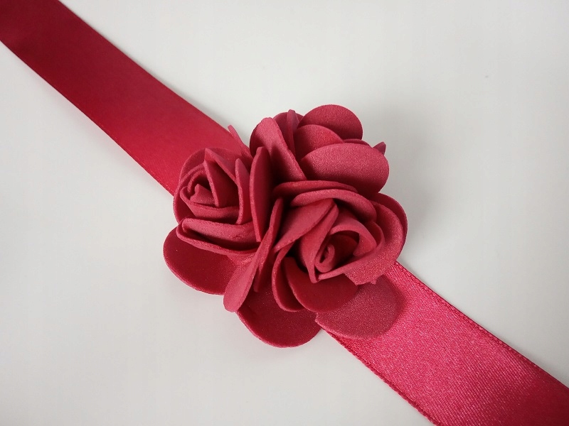 * бордова атласна стрічка, приблизно 25 мм завдовжки,