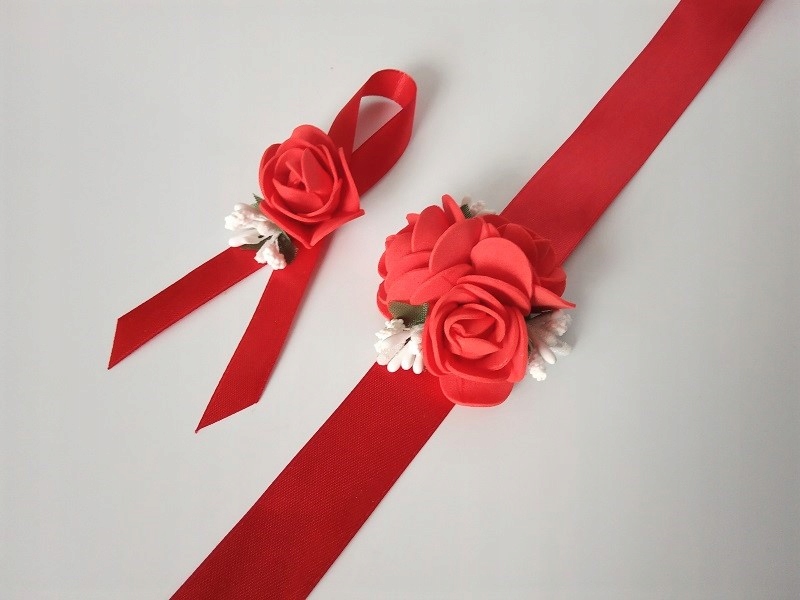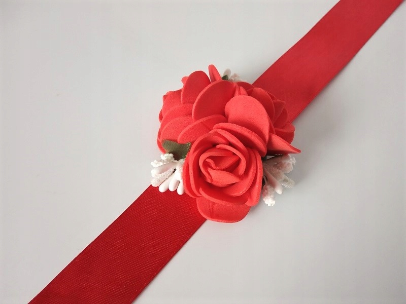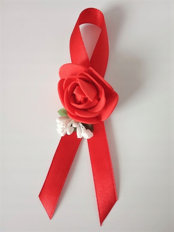 * червона атласна стрічка, приблизно 25 мм завширшки та приблизно 40 см завдовжки,