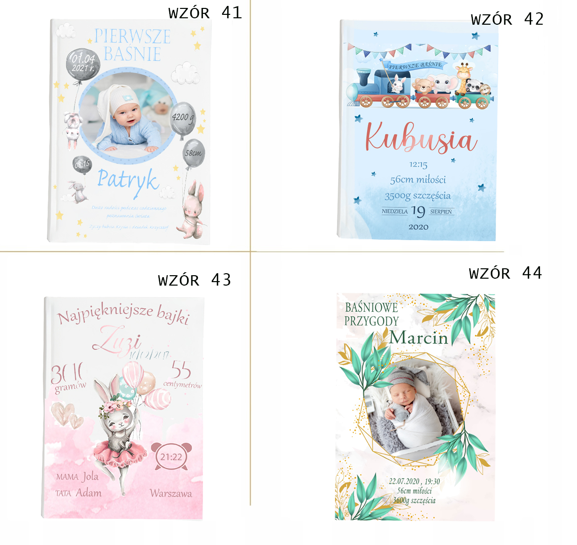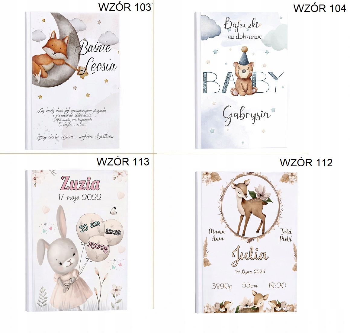 Обкладинка персоналізована, містить, наприклад: дані дитини, фотографію, присвяту.