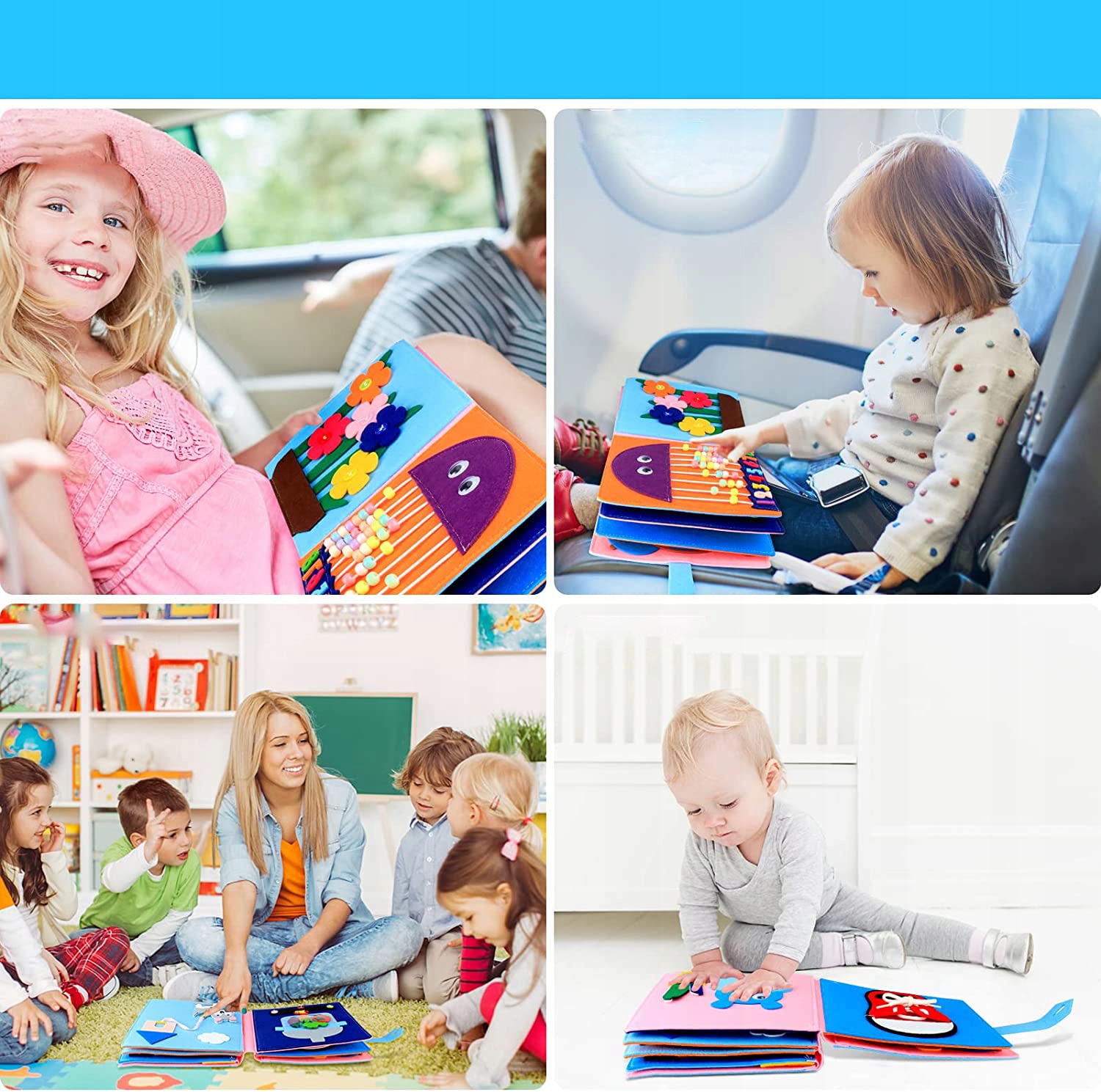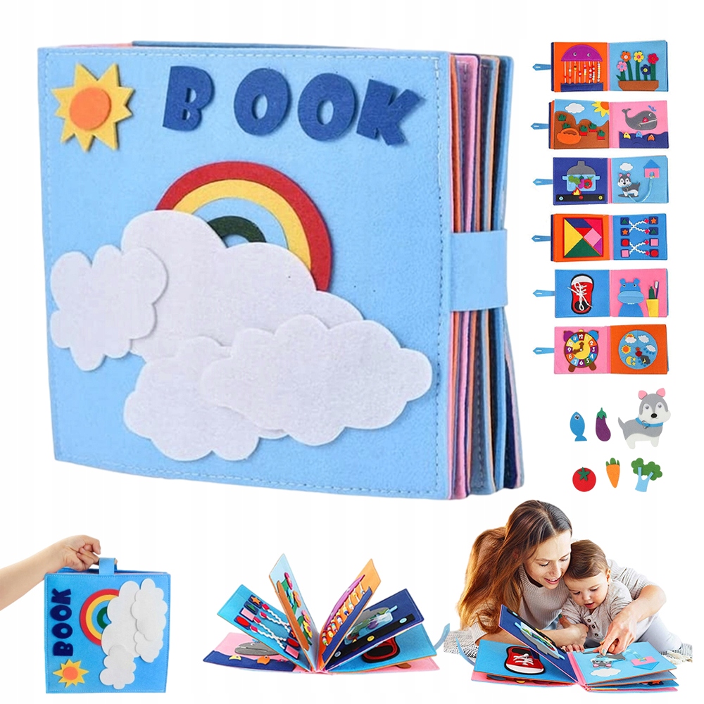 Книга з фетру — це інтерактивна 3D-іграшка на дошці Монтессорі з різнокольоровими сценами, включаючи 6 сторінок і 12 мотивів, для гри та навчання ваших дітей.