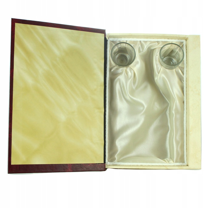 У комплекті з книгою два скляних стакана. Його внутрішня частина обшита однорідним атласним матеріалом.