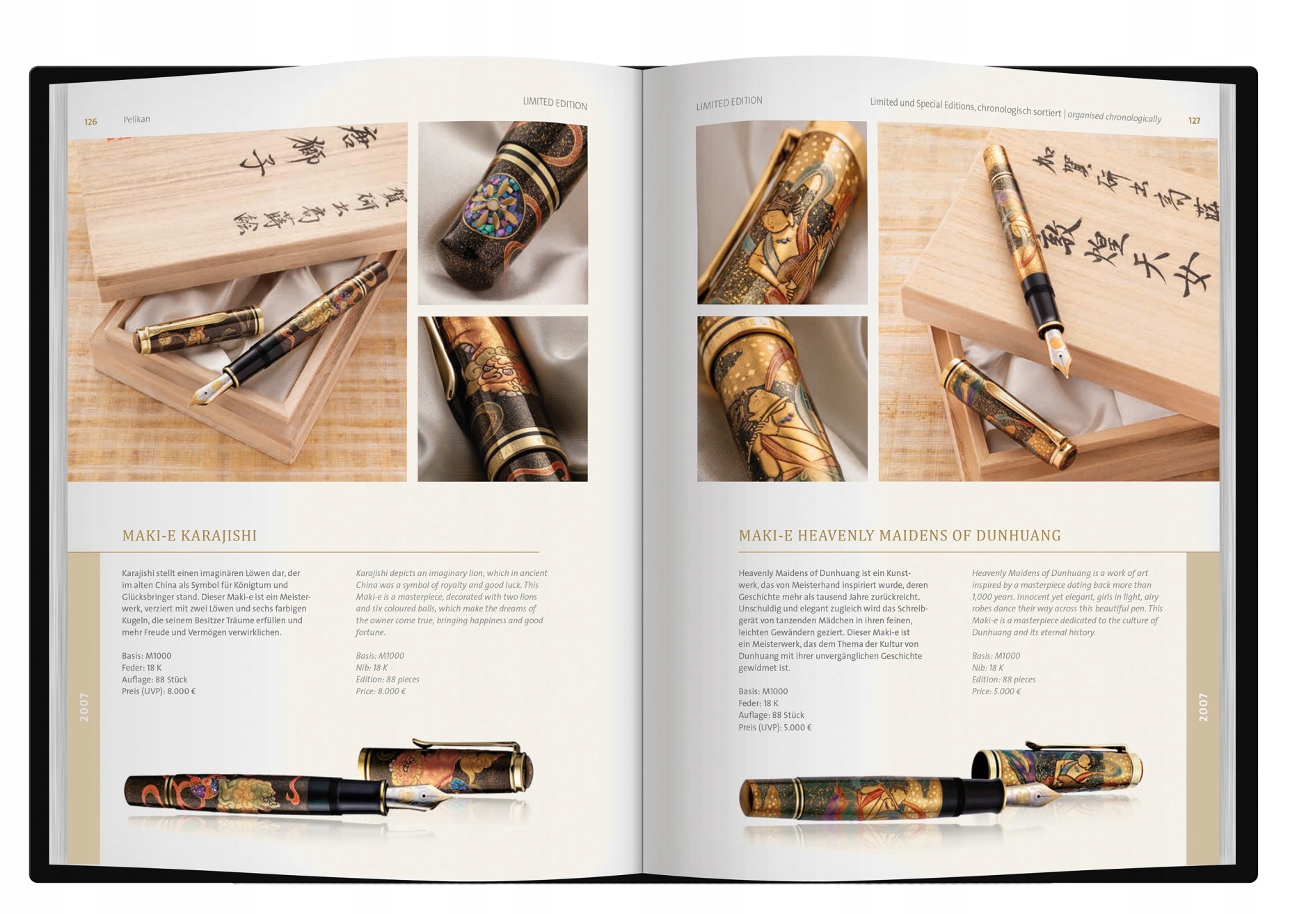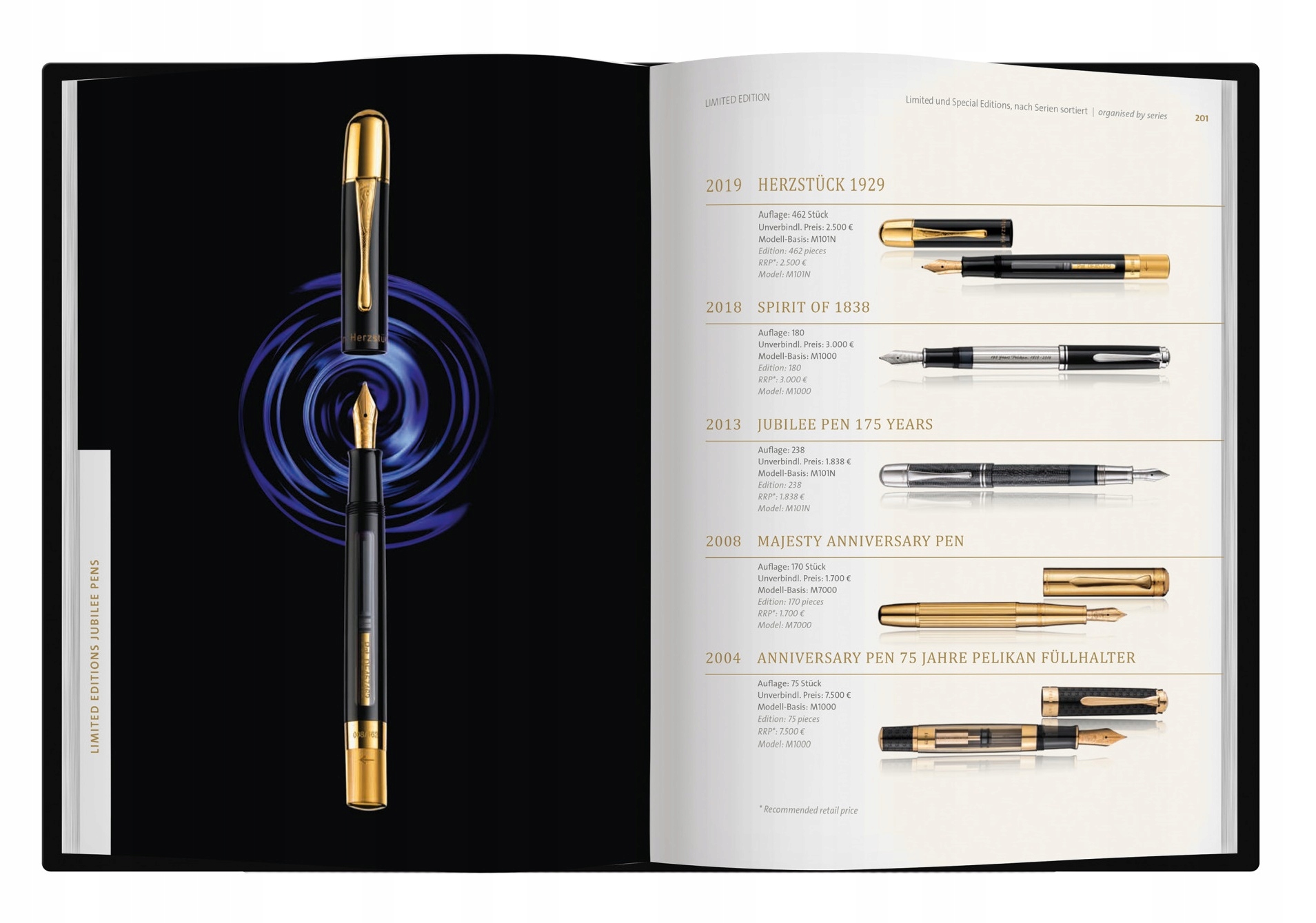 Fine Writing Instruments 1993-2020» містить 280 кольорових сторінок і англійською та німецькою мовами розповідає про першу офіційну обмежену серію від Pelikan у 1993 році (M800 Blue Ocean) до останньої у 2020 році.