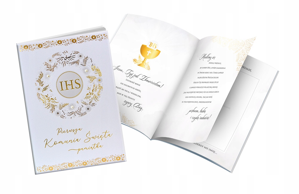сувенірна книга та святе Причастя PMB PR-0002 Kukartka-це елегантний продукт, який вражає ретельно розроблену обкладинку з смаженого нейлону, прикрашеного перловою та золотою фольгою. Всередині є барвистий вміст, багатий красивою графікою, надихаючими цитатами та місцем для особистої відданості. Додатковою перевагою є спеціально розміщений конверт, ідеально підходить для подарункової картки або банкноти. Це відмінний вибір для незабутнього випадку, який є першим святе Причастя. Розміри книги: 15.1 х 20,8 см.