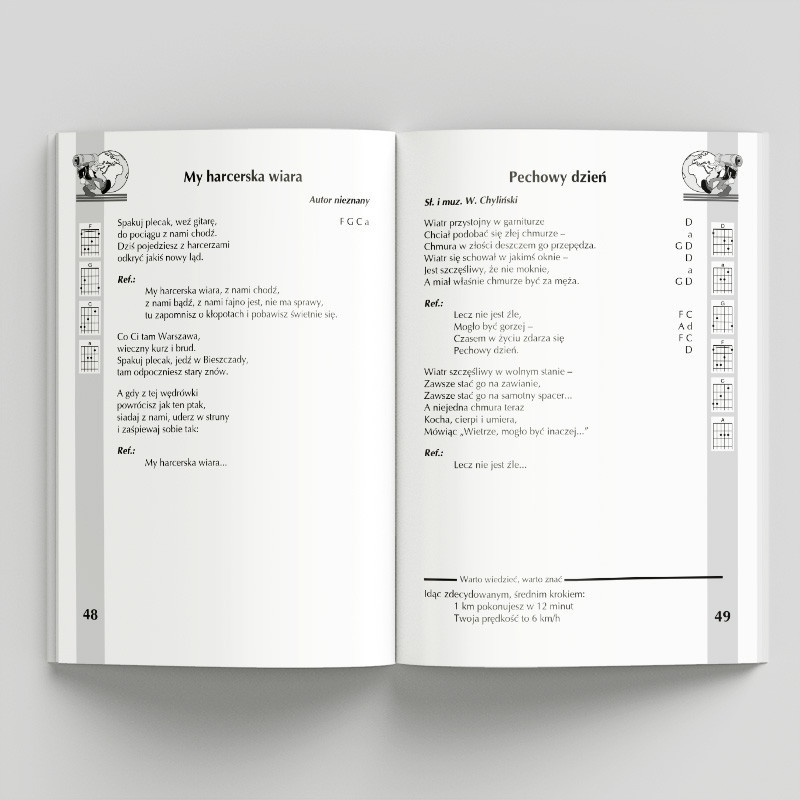 Пісенник містить понад 90 скаутських пісень, туристичних пісень, пісень біля вогнища та халуп. Містить лірику та гітарні акорди для кожної пісні.