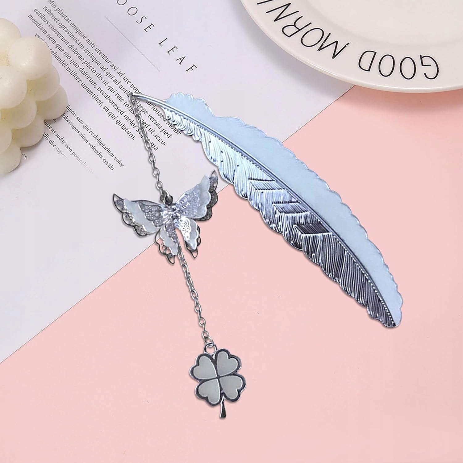 ✔️ Унікальний дизайн: закладки — справжні витвори мистецтва. Кулон у формі 3D метелика та чотирилистої конюшини оцінять усі любителі красивих предметів.