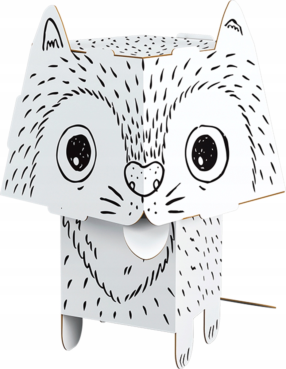 Простора маленька модель тварини з великою головою для розфарбовування. З білого картону. Точно вирізані елементи, які легко збираються без клею та ножиць. Графічні інструкції на зворотному боці упаковки.