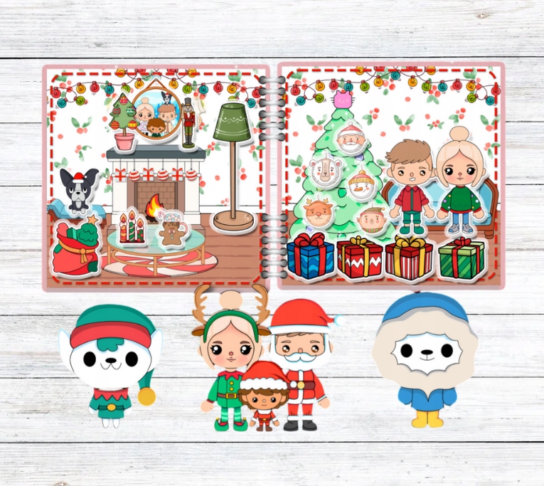 Книжка-розмальовка Toca boca і ігровий набір на липучках Зимові свята