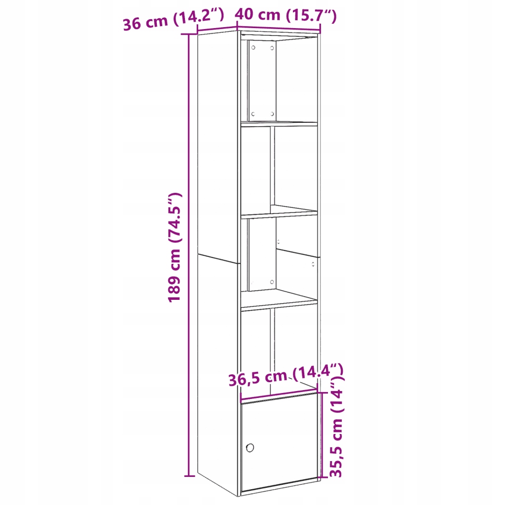 Етажерка, дуб коричневий, 40x36x189 см, матеріал дерево