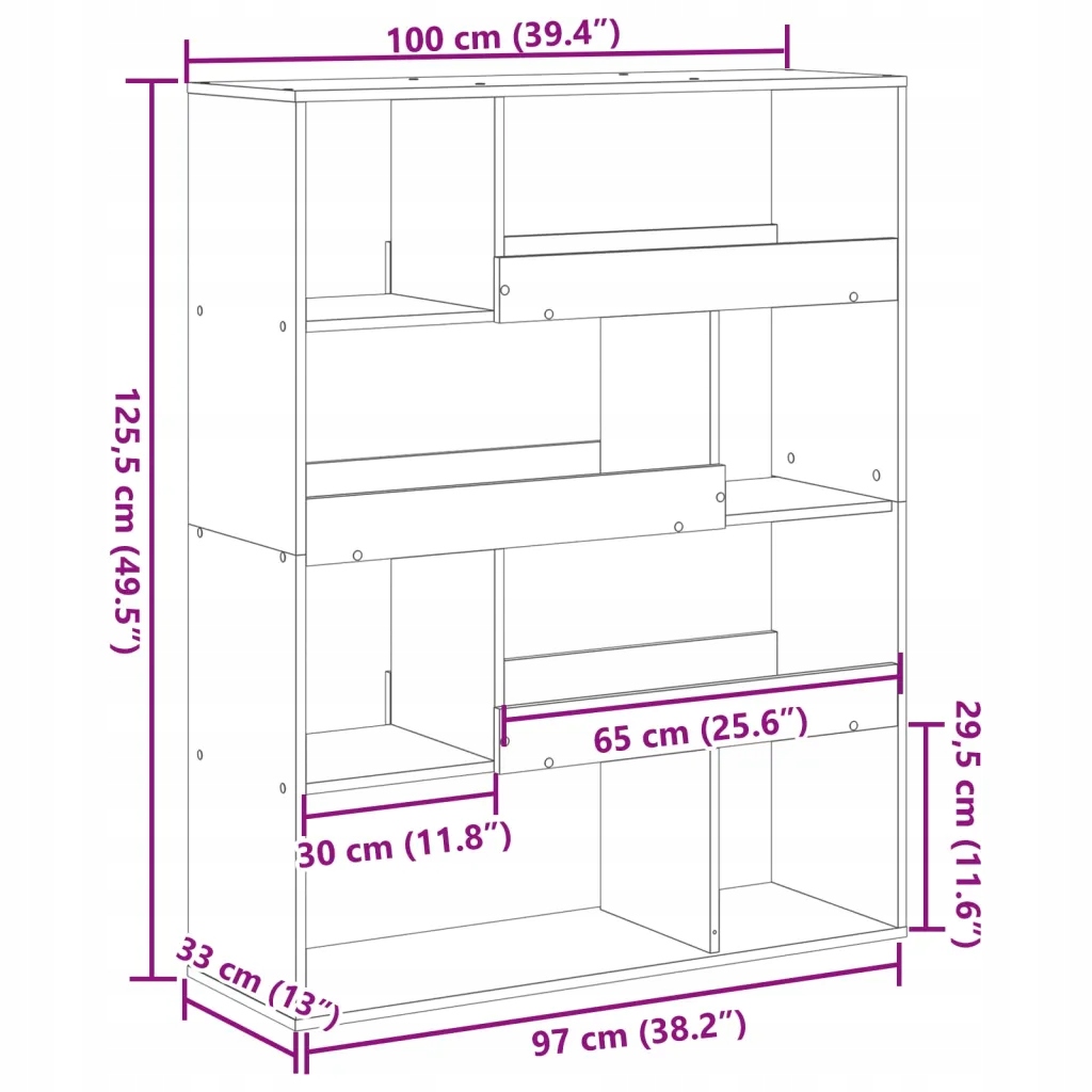 Книжкова шафа, дуб Sonoma, 100x33x125.5 см, матеріал на основі деревини
