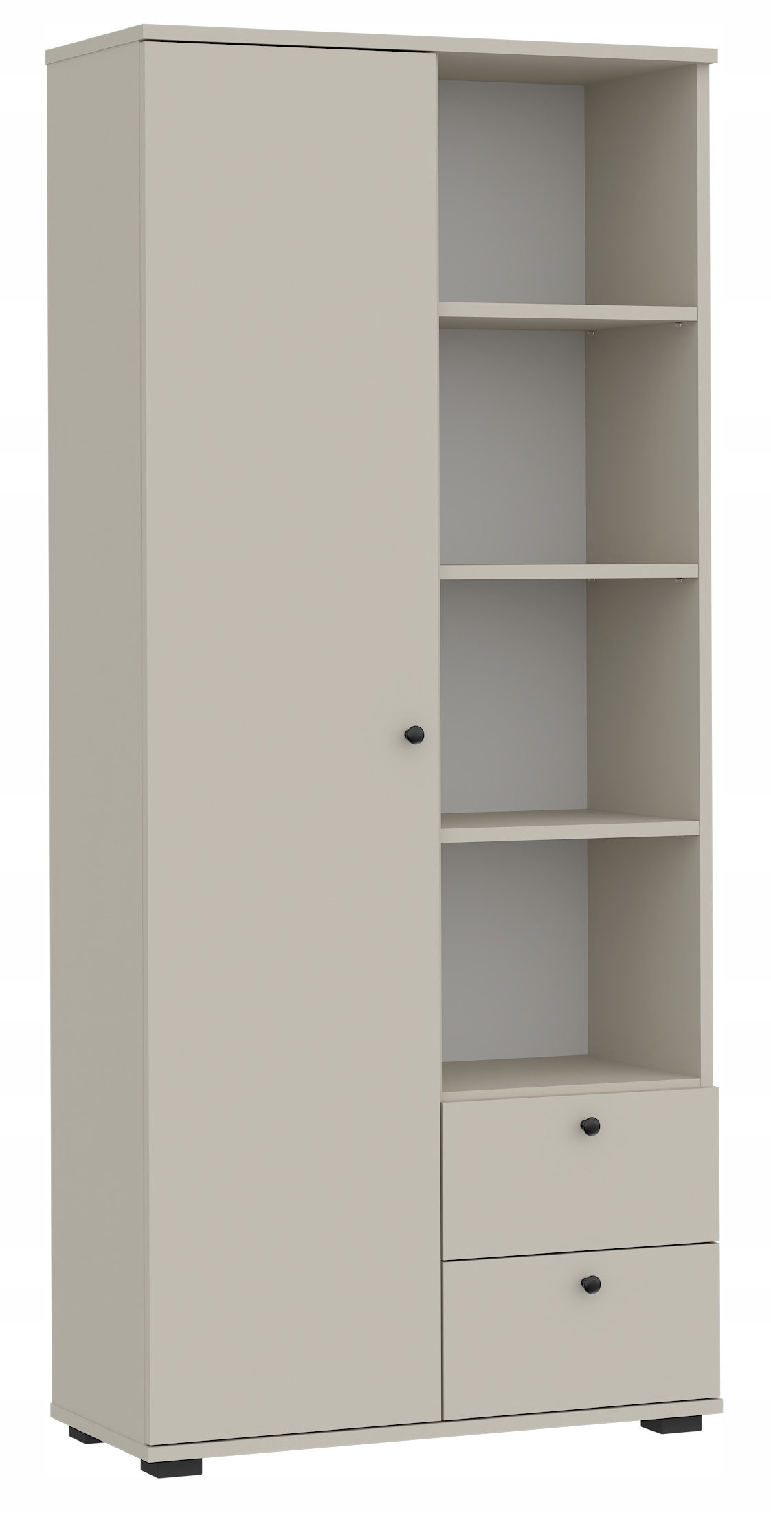Наша книжкова шафа поєднує елегантний дизайн з функціональністю, ідеально відповідає офісу, вітальні чи молодіжній кімнаті. Завдяки модному кольору Кашміру та мінімалістичних ручок, це стане прикрасою вашого інтер’єру!
