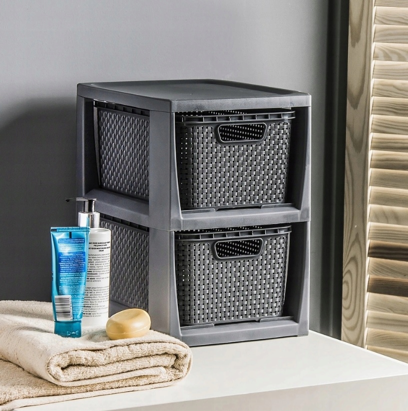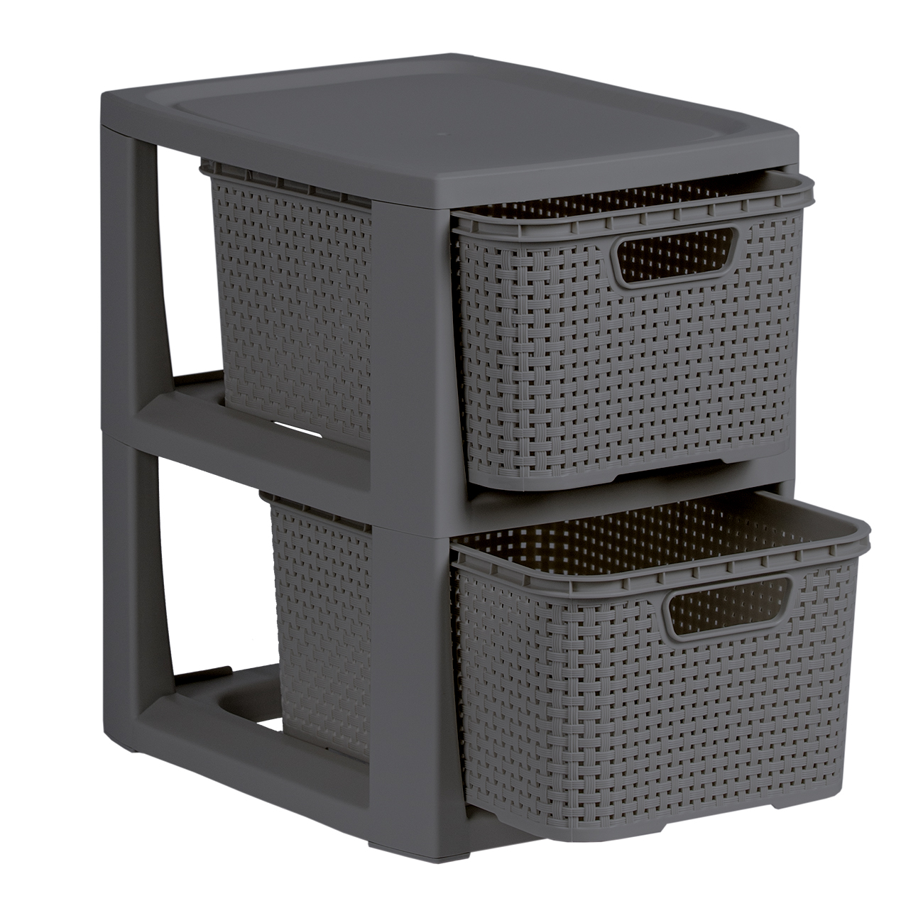 ЕТАЖНА ШАФА КОМОД З РОТАНГУ 2 ЯЩИКИ BRANQ 1727 АНТРАЦИТОВИЙ КОЛІР