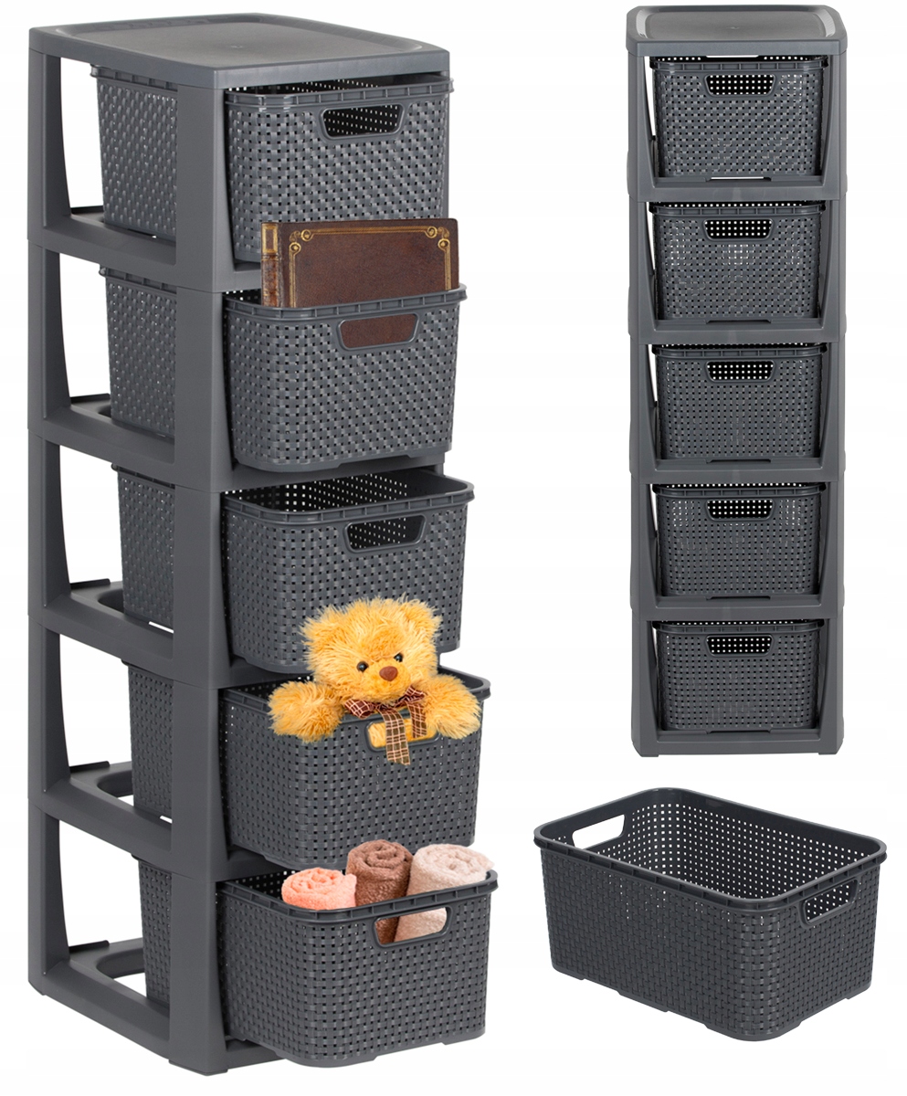 КНИЖКОВА ШАФА ЯЩИКА ШАФА ПОЛИЦЯ З 5 КОШИКАМИ РОТАНГ BRANQ