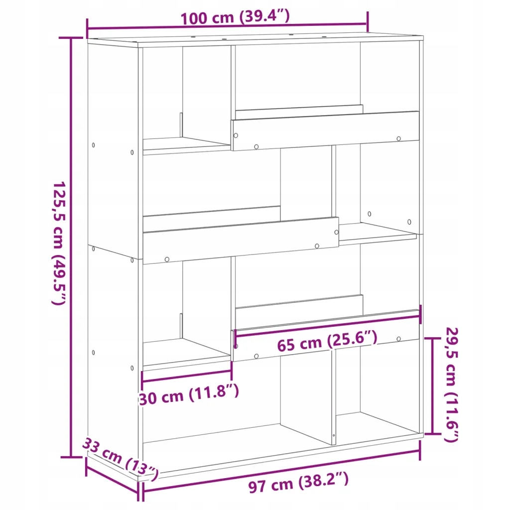 Книжкова шафа/перегородка, дуб сонома, 100x33x125,5 см