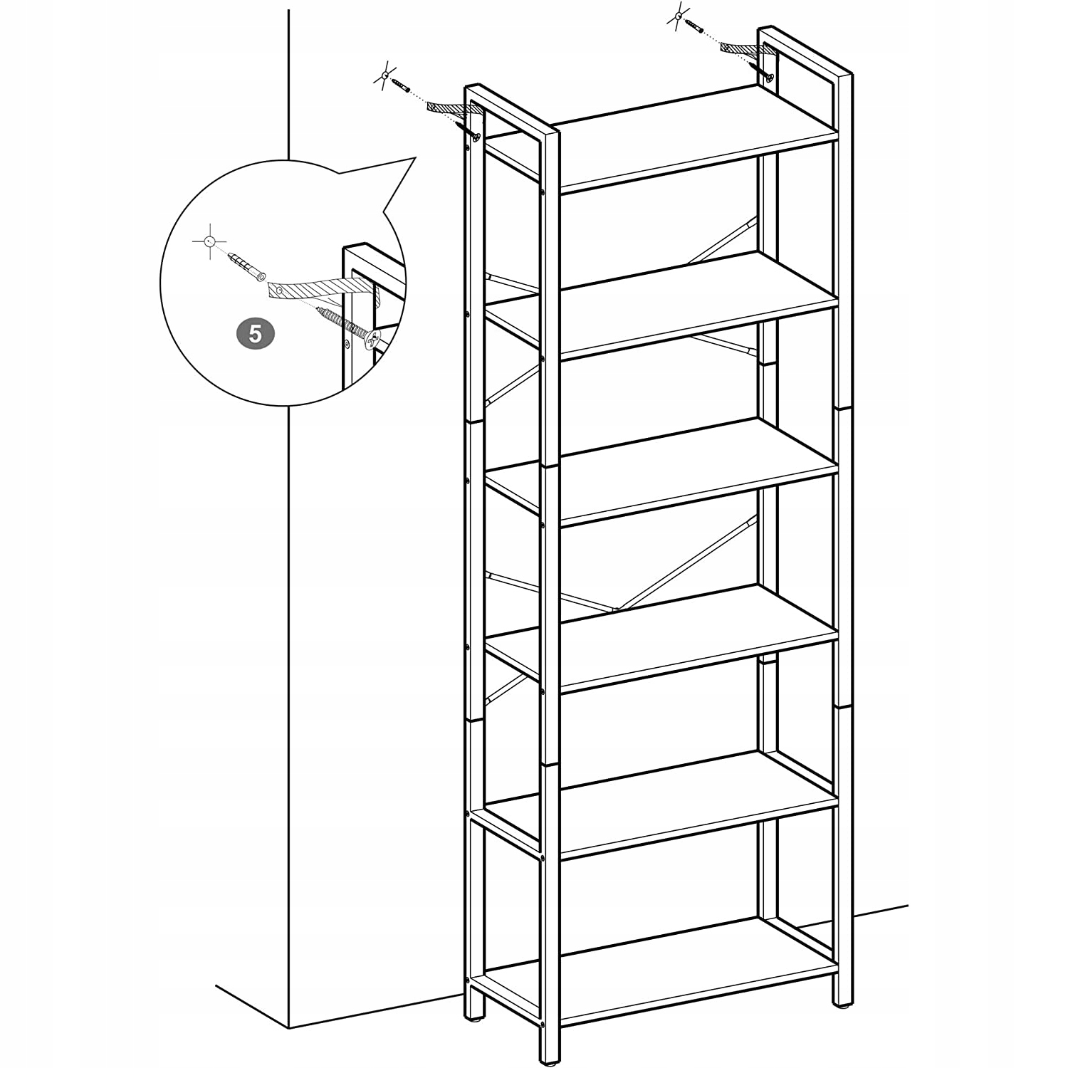 Етажерка універсальна та функціональна, чудово впишеться у вітальню, спальню, хол, кабінет, а 6 полиць полегшать доступ до улюблених речей.