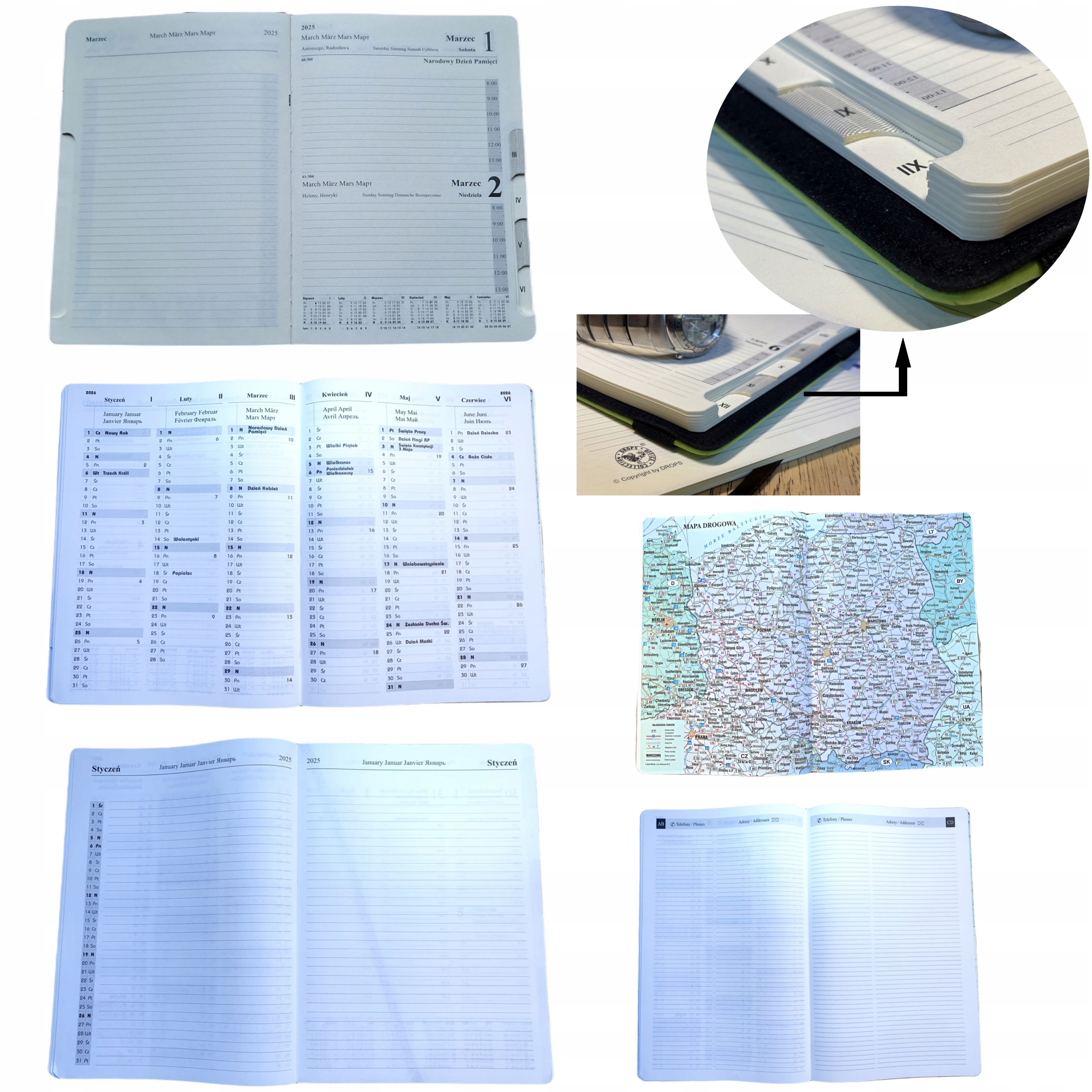 - Система календаря: щодня 370 сторінок або тиждень 162 сторінок. Щомісяця на початку поточного року (2025).