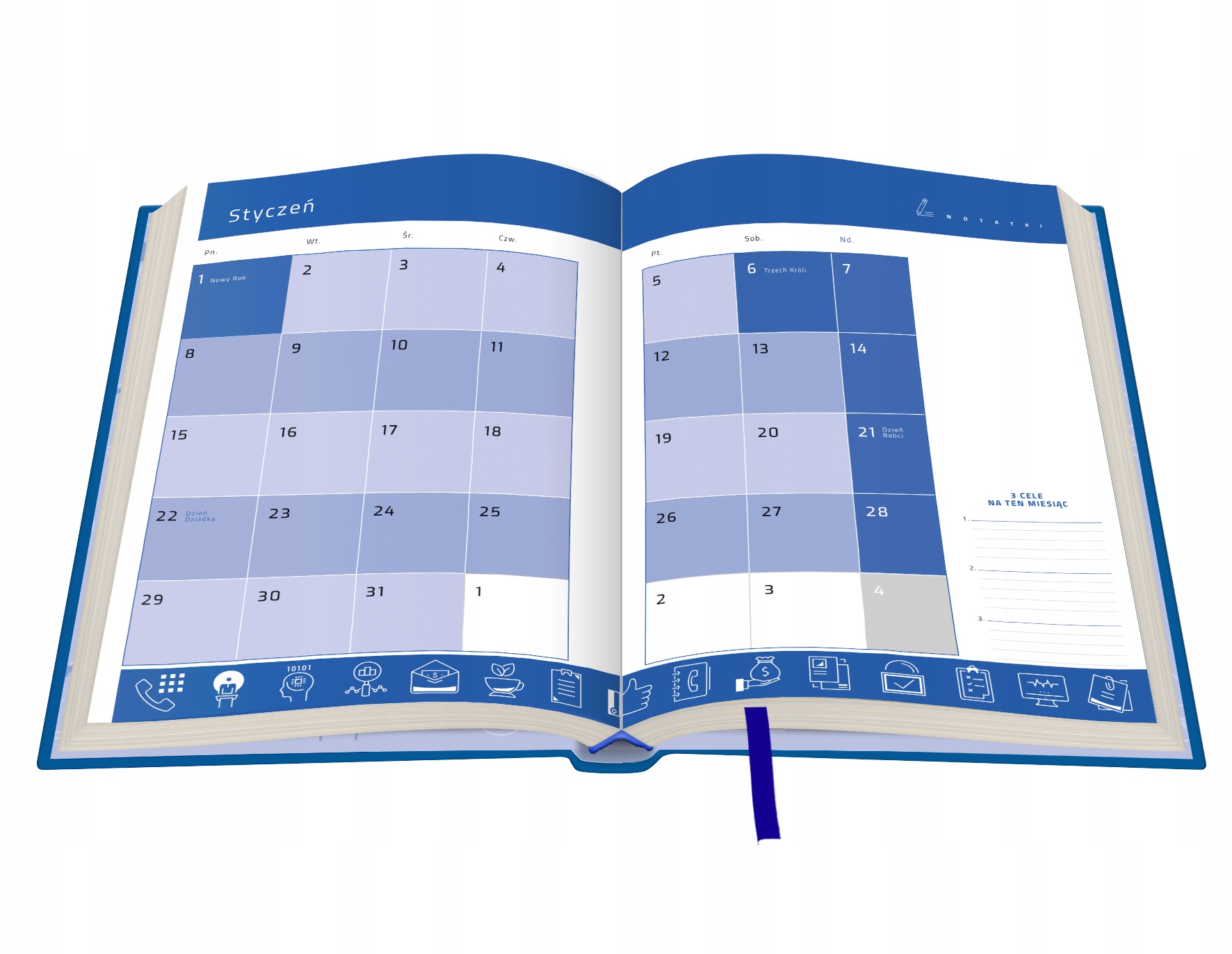 Для зручності в календарі є блакитна стрічка для позначення певного дня.