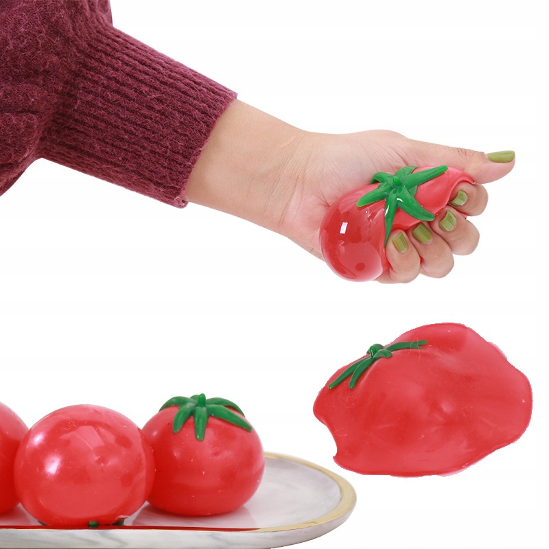 SUMPTY WATERBALL TOMATO - це іграшка-антистрес з дуже м'якої гуми, з невеликими виступами, наповнена водою, коли її кидаєш на рівну поверхню, м'яч прилипає до себе, розплющується, а потім повільно відшаровується та повертається до попереднього стану. форма .