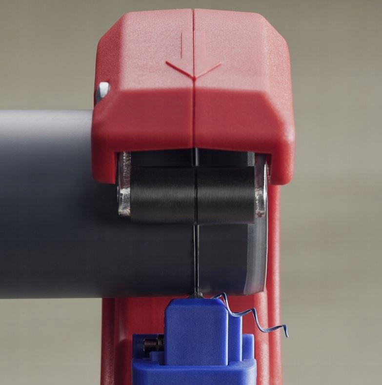 - Зручне різання та зняття фаски всіх стандартних пластикових дренажних труб із максимальним діаметром 50 мм за один прохід