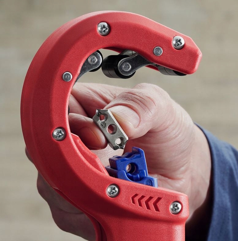 - Після вставлення труби в різак пружина -навантажене лезо чинить достатній тиск, щоб зробитирозріз без необхідності повторного регулювання!