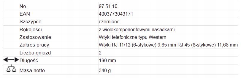 Knipex 97 51 10 КРУТИЙ ЗАЖИМ RJ45 RJ11 RJ12