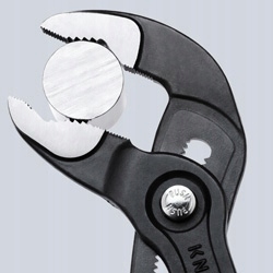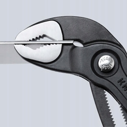 KNIPEX Cobra® - трубогубці нового покоління. Більше не потрібно витрачати час на налаштування потрібного розміру щелепи. Просто покладіть верхню щелепу на предмет, який тримаєте, натисніть кнопку та потягніть нижню щелепу. Це так просто!
