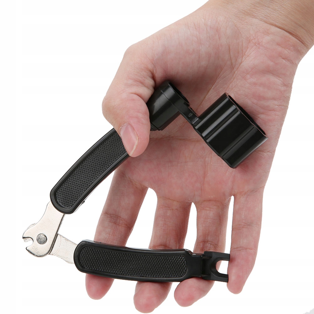 Це багатофункціональний інструмент для інструментів для обслуговування гітари та басів, інтегрує струнний вітер, нож, мост в одному корпусі для зручного використання. Це практичний і необхідний інструмент для збереження гітари для гітариста.