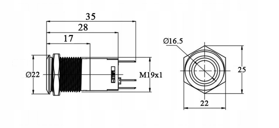 Кнопка 22mm антивандальна миттєва Світлодіодна 250/24V