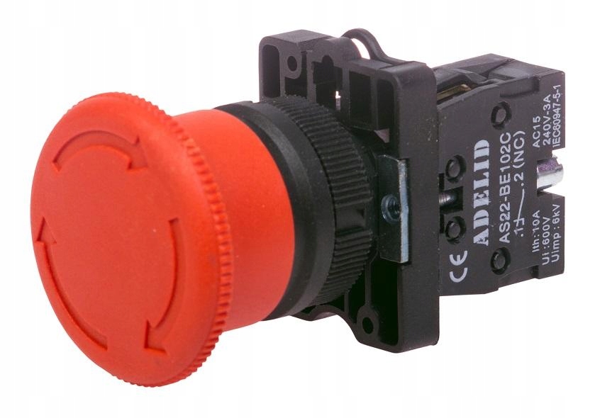 Дія: Кнопка безпеки заблокована натисканням гриба, розблокована обертанням.