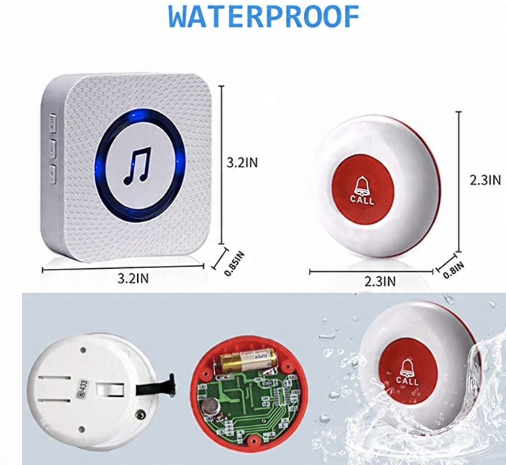 - 【Водонепроникний передавач без】: кнопка дверного дзвінка є водонепроникною. Підходить для постійного ліжка/пральні, підходить для їжі/супу. Його можна встановити в пральні для використання в таких місцях: дім, лікарня, лікарня тощо