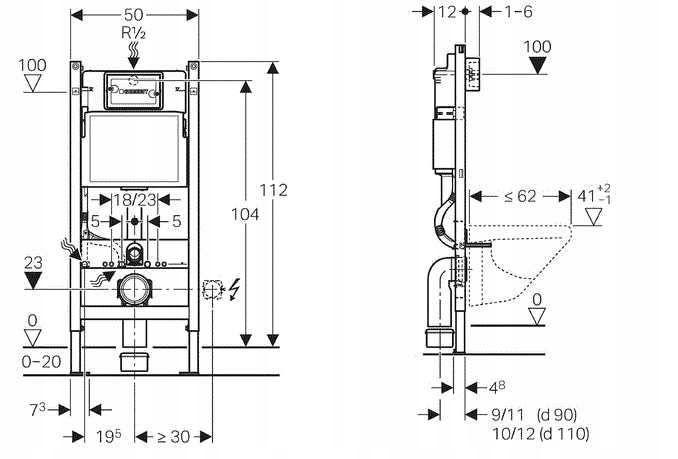 Рама прихованого монтажу GEBERIT для підвісного унітазу + набір настінних опор