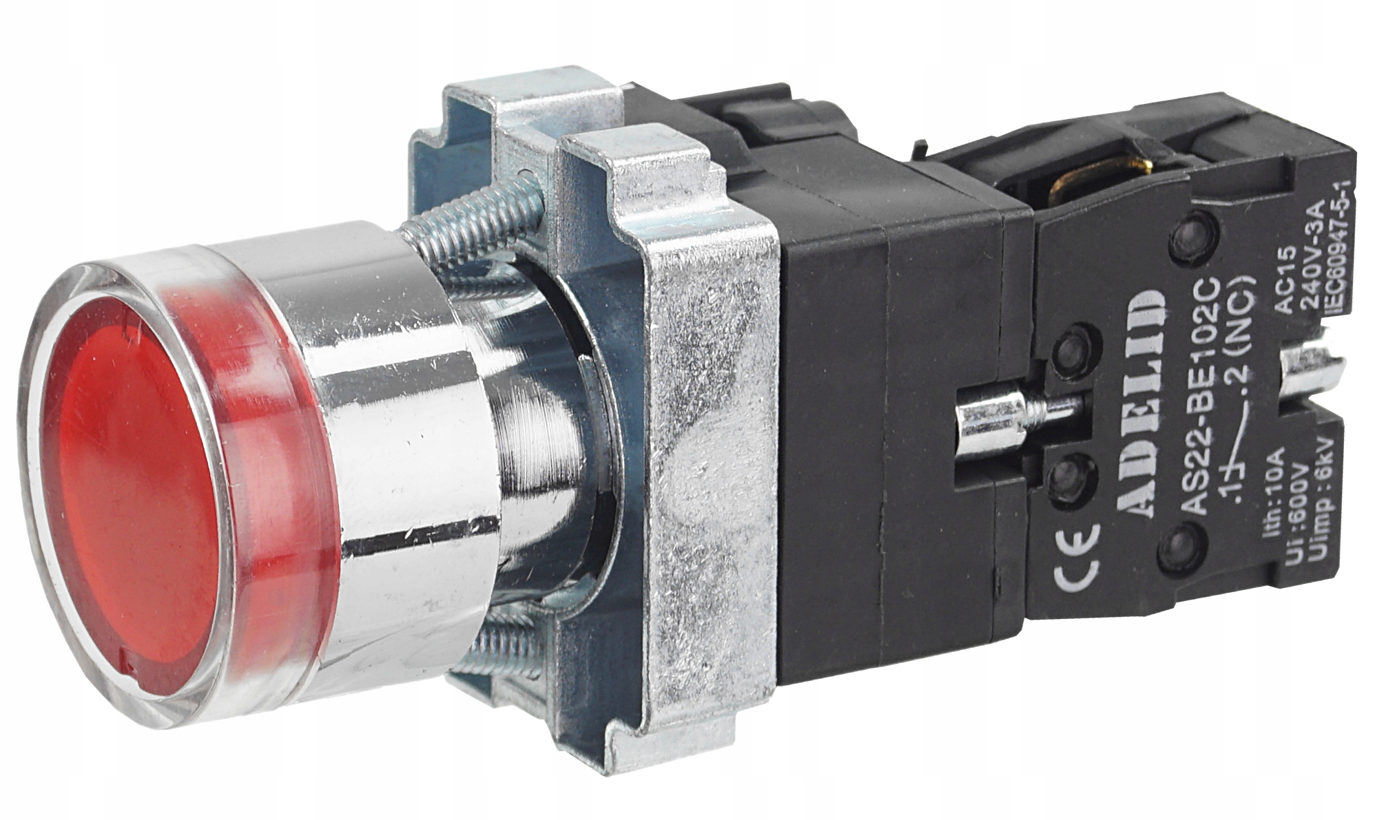 Кнопка керування, для встановлення в корпуси та блоки керування, відповідних розмірів.
