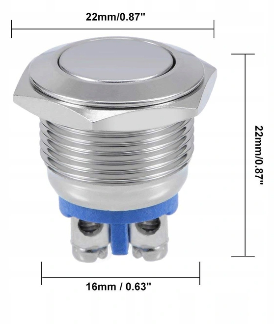 КНОПКА ВАНДАЛЬНОСТІЙКА 16мм ТИМЧАСОВА 2А / 250В ПЛОСКА