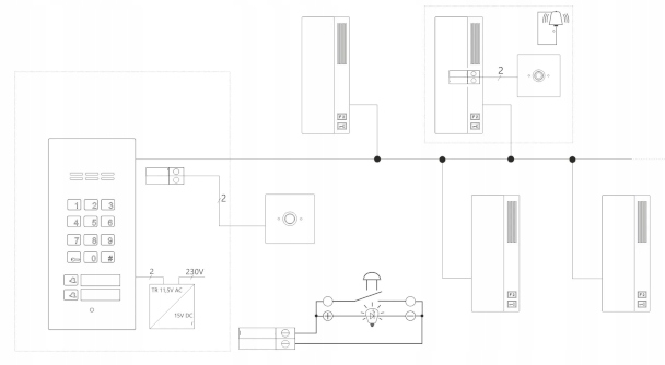 ✔ Кнопка Рінгтона до приміщень - дозволяє безпосередньо зателефонувати у вибрану квартиру (залежно від конфігурації блоку, що переходить). ) - сумісна з вибраними моделями приймачів.